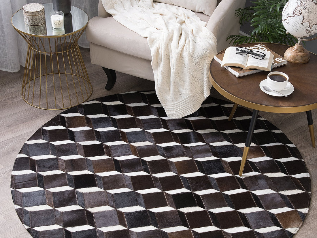 Leather Luxury: Genuine Cowhide Patchwork Area Rug | Hair on Leather Cowhide Carpet | PR110