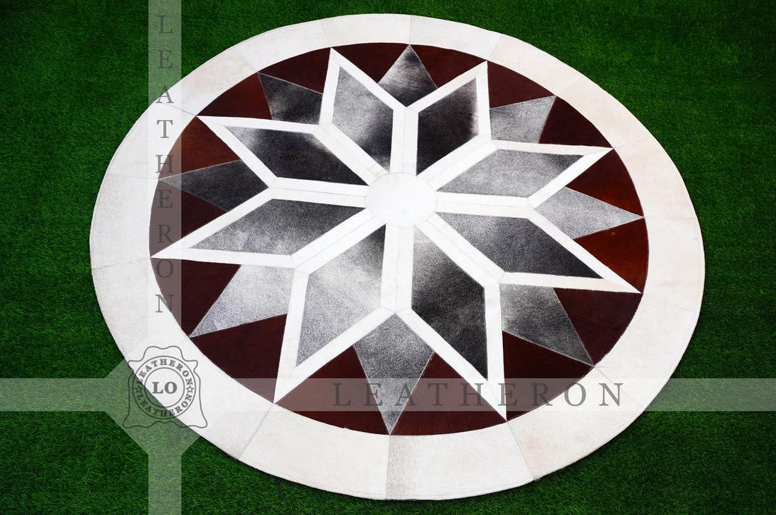 Exquisite Handcrafted Cowhide Masterpiece, 100% Natural Patchwork Area Rug | Hair on Leather Cowhide Carpet | PR109