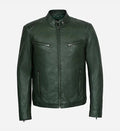 Designed for men who appreciate strong style and premium craftsmanship, this dark green leather jacket is a versatile statement piece—ideal for casual outings, night rides, and urban wear.