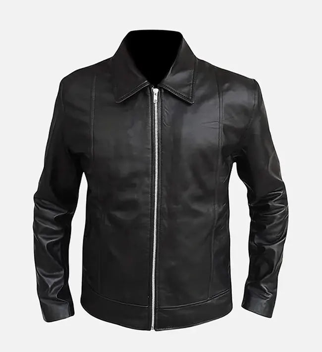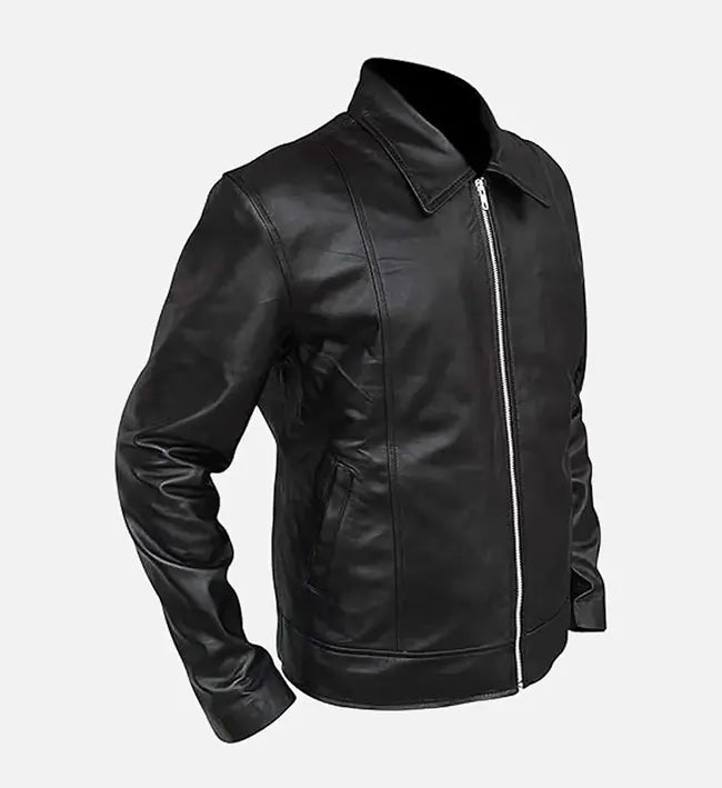Upgrade your wardrobe with this premium men’s leather jacket, crafted from 100% genuine sheepskin leather for a soft, supple feel and long-lasting durability. The sleek black finish, paired with streamlined stitching and silver zipper detailing, delivers a modern, refined look perfect for everyday wear or smart-casual occasions.