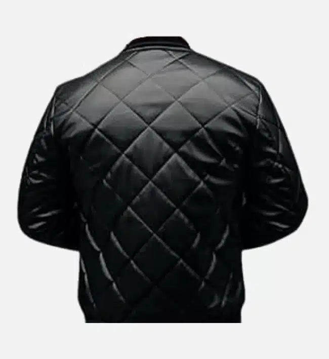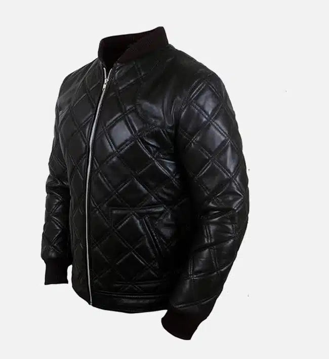 Men’s Sheepskin Leather Bomber Jacket – Black with Diamond Quilted Pattern