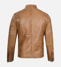 Men’s Sheepskin Leather Jacket – Tan Rust Brown with Quilted Detailing
