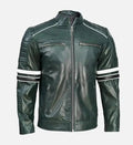 Perfect for casual outings, evening wear, or street-style looks, this dark green leather jacket blends premium craftsmanship with eye-catching design—an essential statement piece for the modern man.