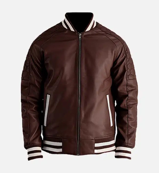 Perfect for casual outings, streetwear, or evening events, this tri-color leather jacket blends premium craftsmanship with sporty sophistication—an essential addition to any man’s wardrobe.