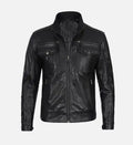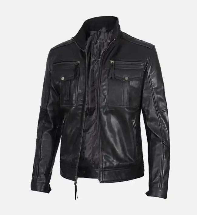 Refined, versatile, and crafted for everyday wear, this men’s leather jacket is made from 100% genuine sheepskin leather, offering a soft, supple feel and long-lasting durability. The classic black finish, streamlined silhouette, and minimalist design make it a timeless wardrobe staple that pairs effortlessly with casual or smart-casual outfits.