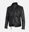 Men’s Sheepskin Real Leather Biker Jacket – Black with Sleek Minimalist Design