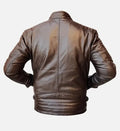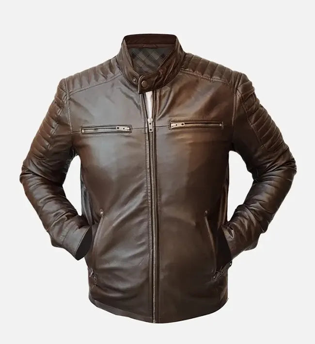 Elevate your wardrobe with this premium men’s leather jacket, crafted from 100% genuine sheepskin leather for a soft, supple feel and long-lasting durability. The rich brown finish is enhanced with stylish quilted patterns on the shoulders and back, complemented by a belt-style waist, delivering a sleek, masculine silhouette perfect for everyday wear or smart-casual occasions.