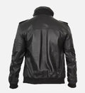 Men’s Sheepskin Leather Jacket – Black with Ribbed Collar and Minimalist Detailing