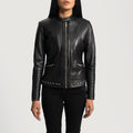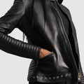 Women’s Black Sheepskin Leather Biker Jacket with Band Collar
