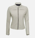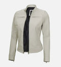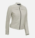 Women’s Sheepskin Leather Jacket – White & Yellow with Streamlined Design