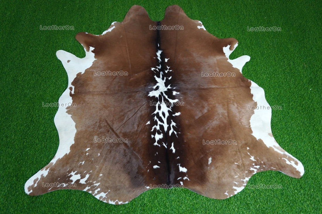 XLARGE (5.8 X 6 ft.) Exact As Photo, Brown White COWHIDE RUG | 100% Natural Cowhide Rug | Hair-on Leather Cow Hide Rug | C391