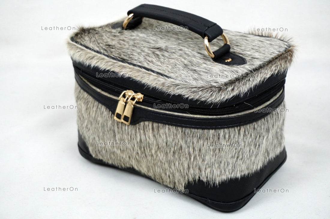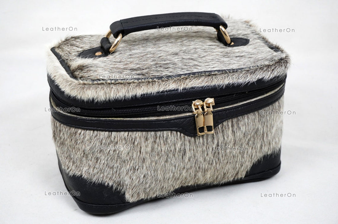 Cowhide Beauty Box Bag | 100% Natural Cowhide Top Handle Bag | Real Hair On Cowhide Leather Ladies Bag | Cow Skin Beauty Box Bag | BOX01