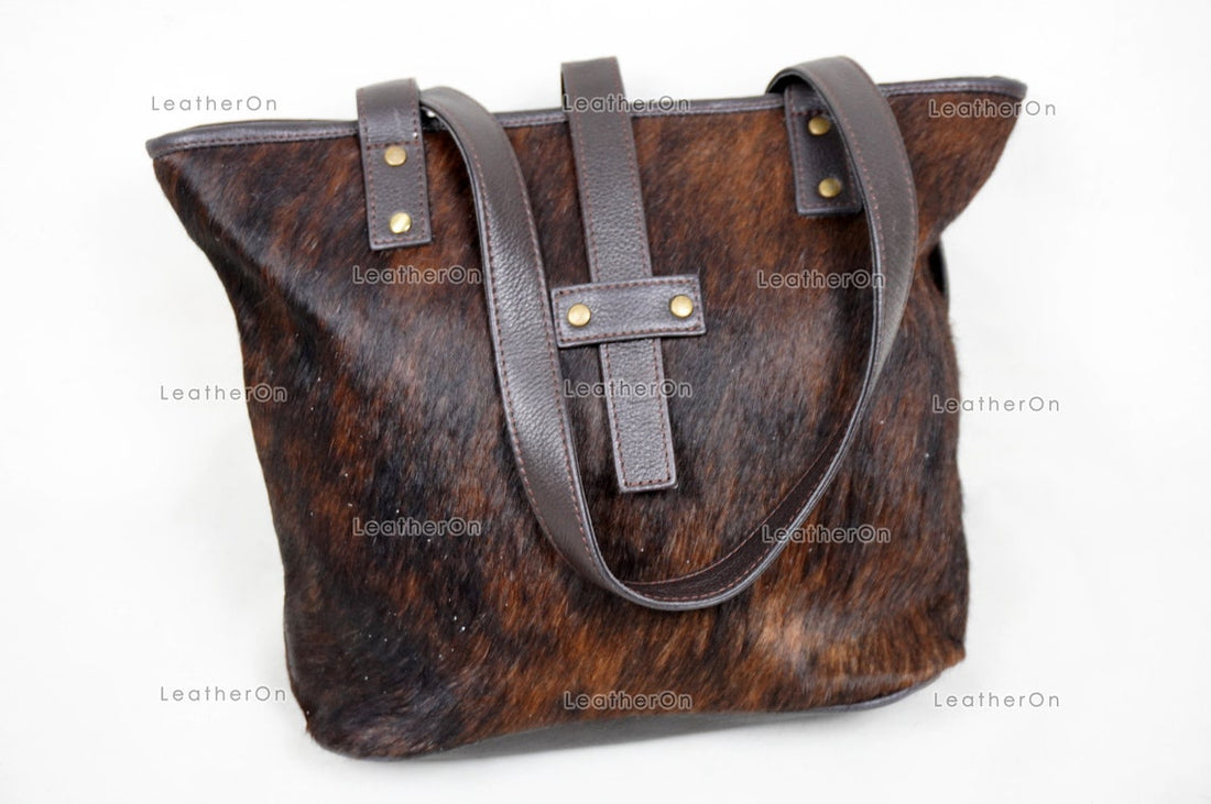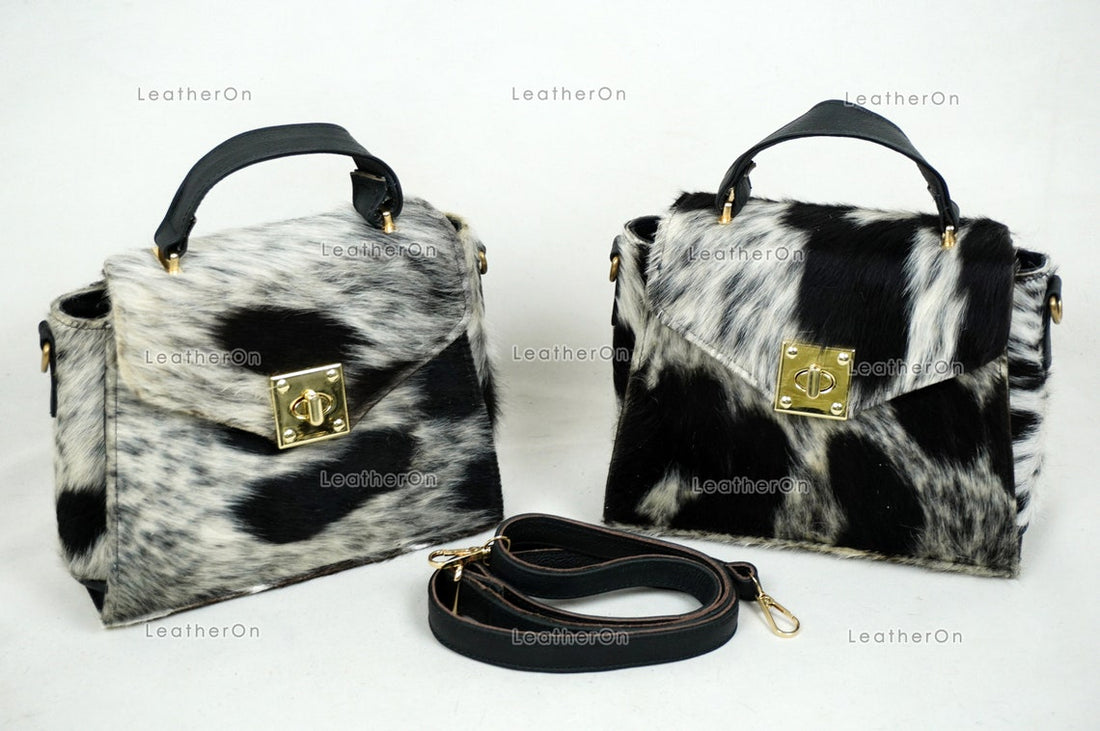 Natural Hair On Cowhide Handbag | Genuine Hair On Leather Shoulder Bag | Real Cow Skin Ladies Bag