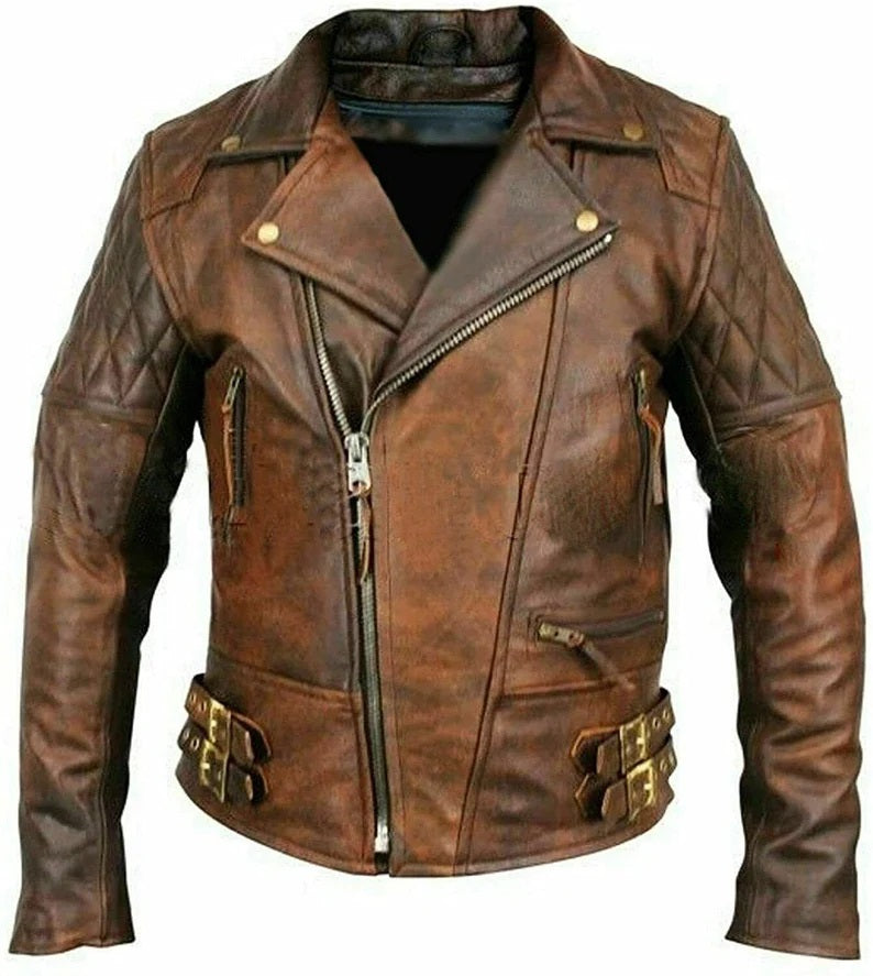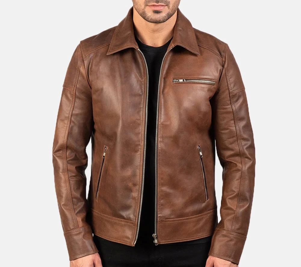 Vintage Style Men's Brown Leather Jacket - Handcrafted Distressed Leather Biker Jacket