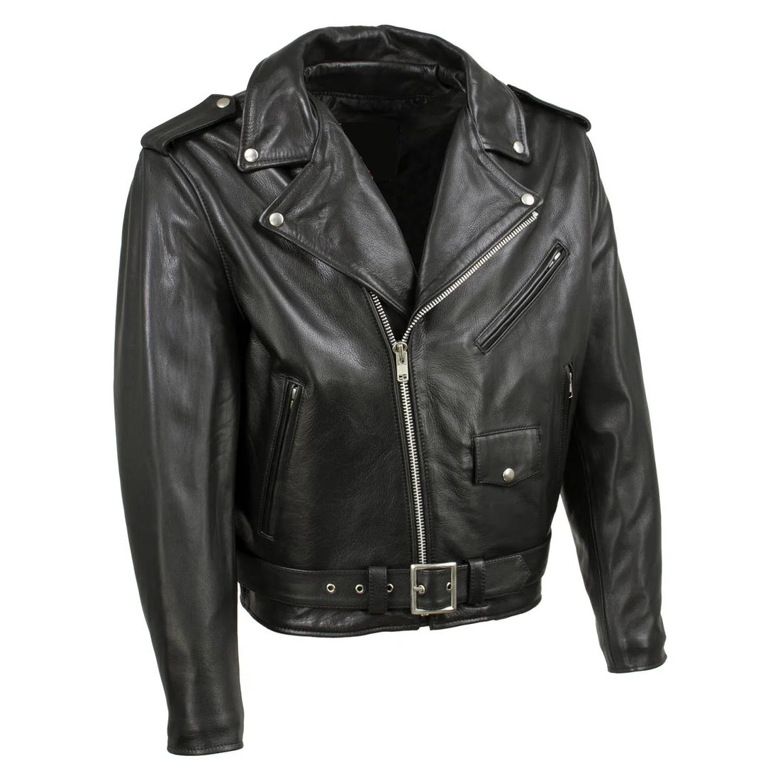 Men's Biker Leather Jacket - Genuine Full Grain Leather Cafe Racer Jacket - Motorcycle Jacket