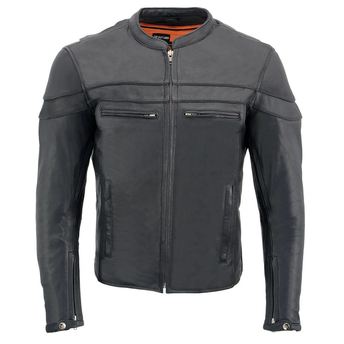 Men's Premium Motorcycle Vented Leather Jacket with Multi-Utility Pockets - Real Lambskin Leather Jacket - Classic Cafe Racer Biker Jacket