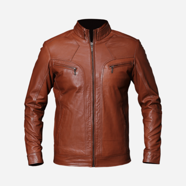 Men's Motorcycle Distressed Brown Leather Jacket - Genuine Lambskin Leather Cafe Racer Jacket - Casual Biker Jacket