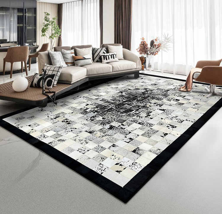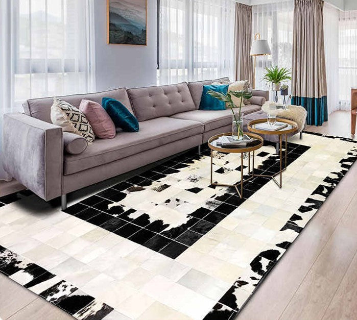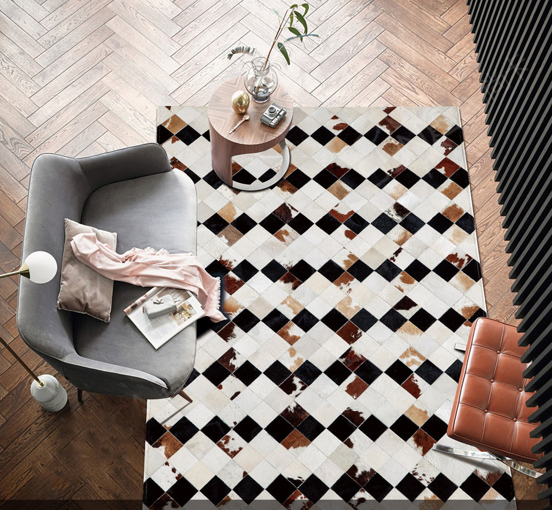 Natural Hair-On Cowhide Patchwork Leather Carpet – Handmade Excellence