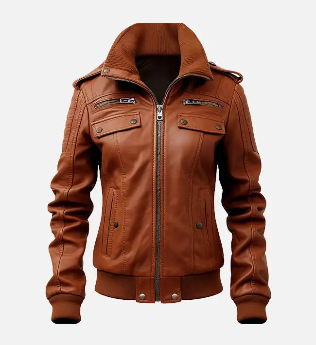 Women’s Sheepskin Leather Jacket – Tan Brown Slim-Fit with Stand-Up Collar Elevate your wardrobe with...
