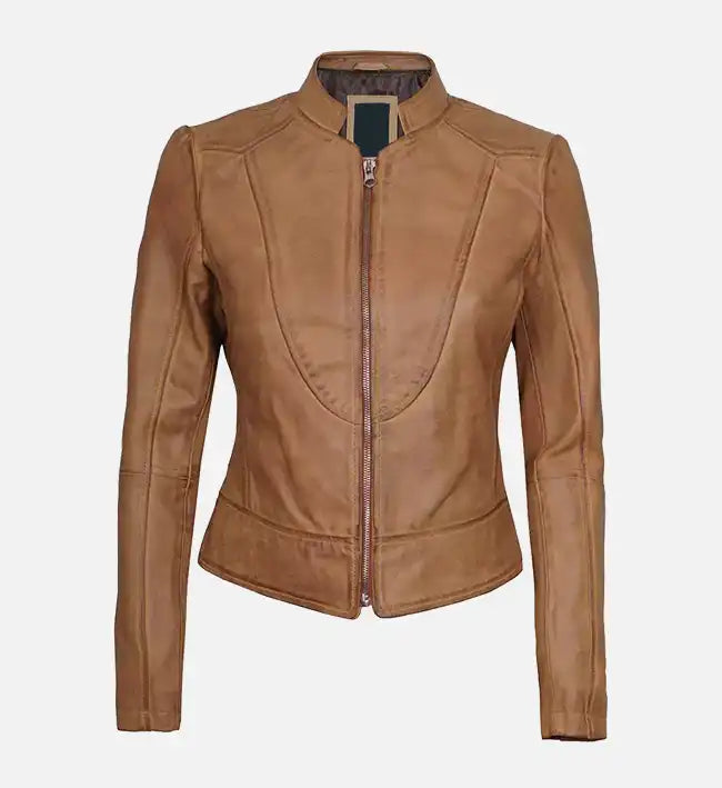 Women’s Sheepskin Tan Brown Leather Café Racer Jacket