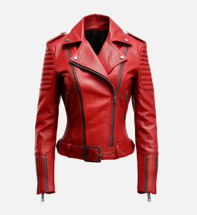 Women’s Sheepskin Slim fit Red Biker Leather Jacket