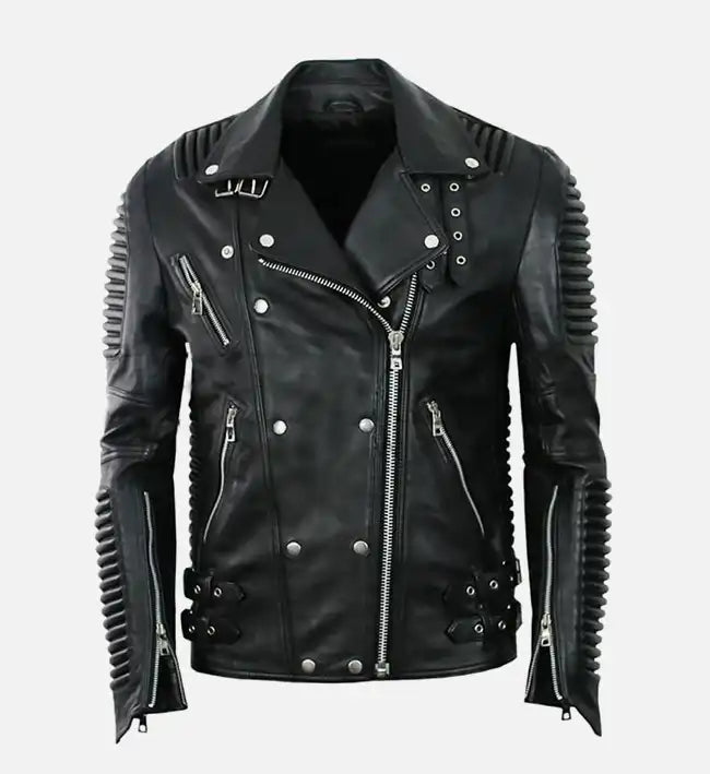 Women’s Brown Sheepskin Leather Biker Jacket with Quilted Shoulders Step into bold sophistication with this...