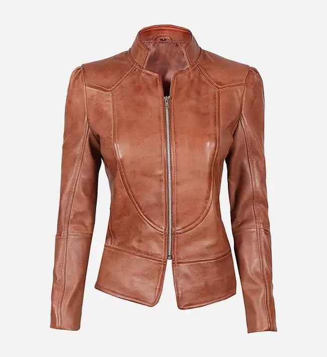 Women’s Brown Sheepskin Cognac Wax Café Racer Leather Jacket