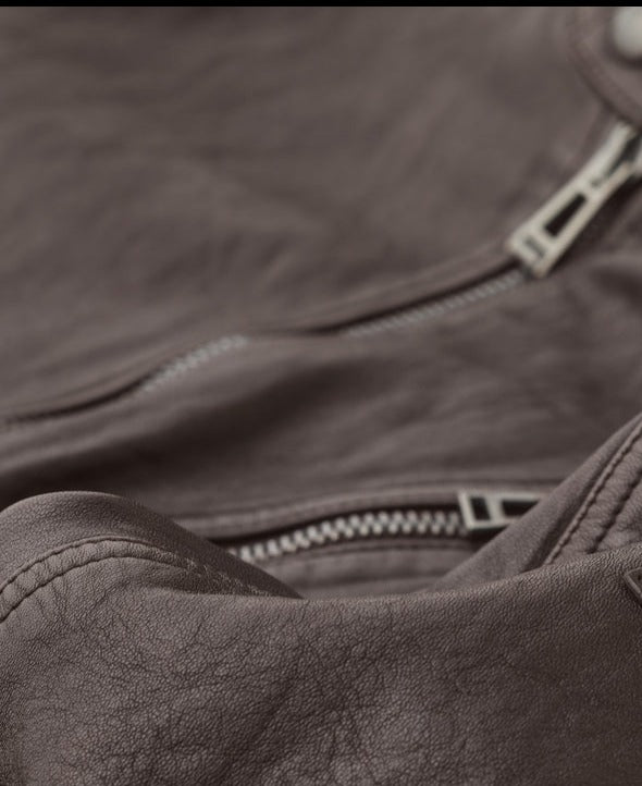 Experience the ultimate blend of style and quality with our 100% original lambskin leather jacket. Crafted with a slim and smart cafe racer style, this jacket is sure to elevate your look. Made from premium quality leather, our cafe racer jacket offers both durability and style.
