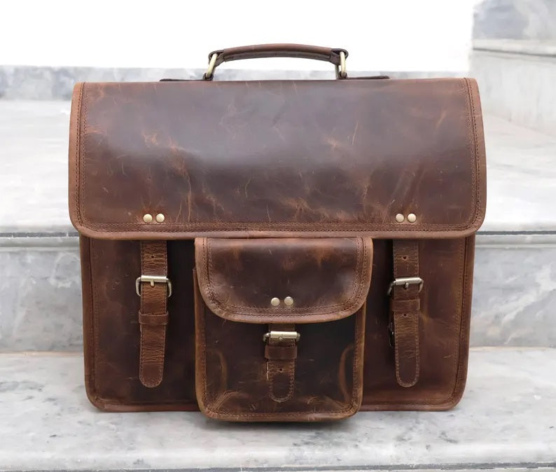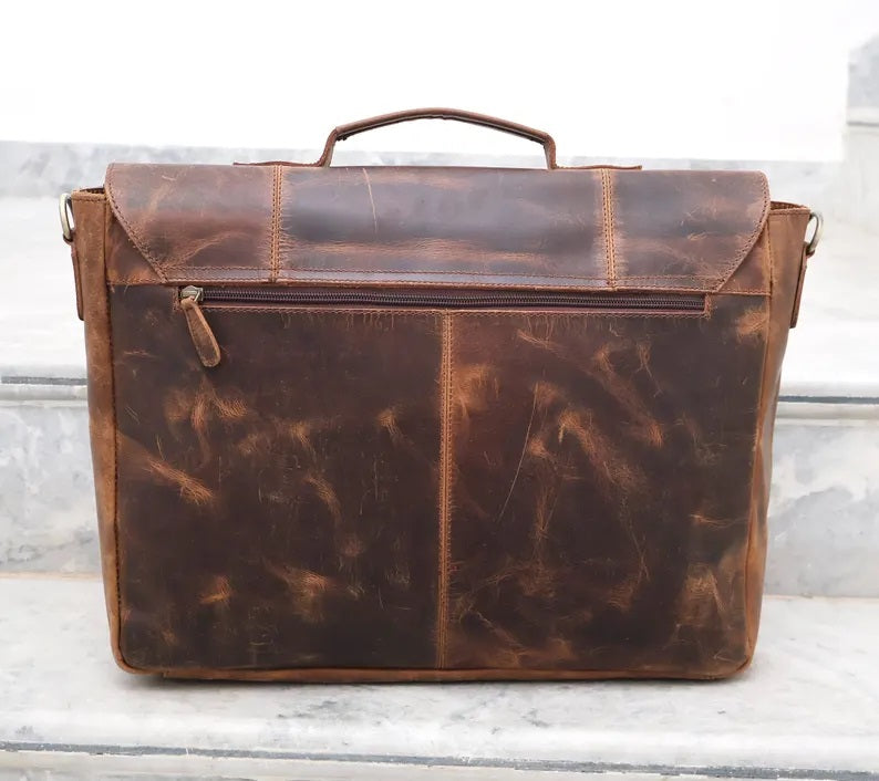 100% Real Leather Laptop Briefcase Bag | Handmade Leather Office Bag | Documents Notebook Bag