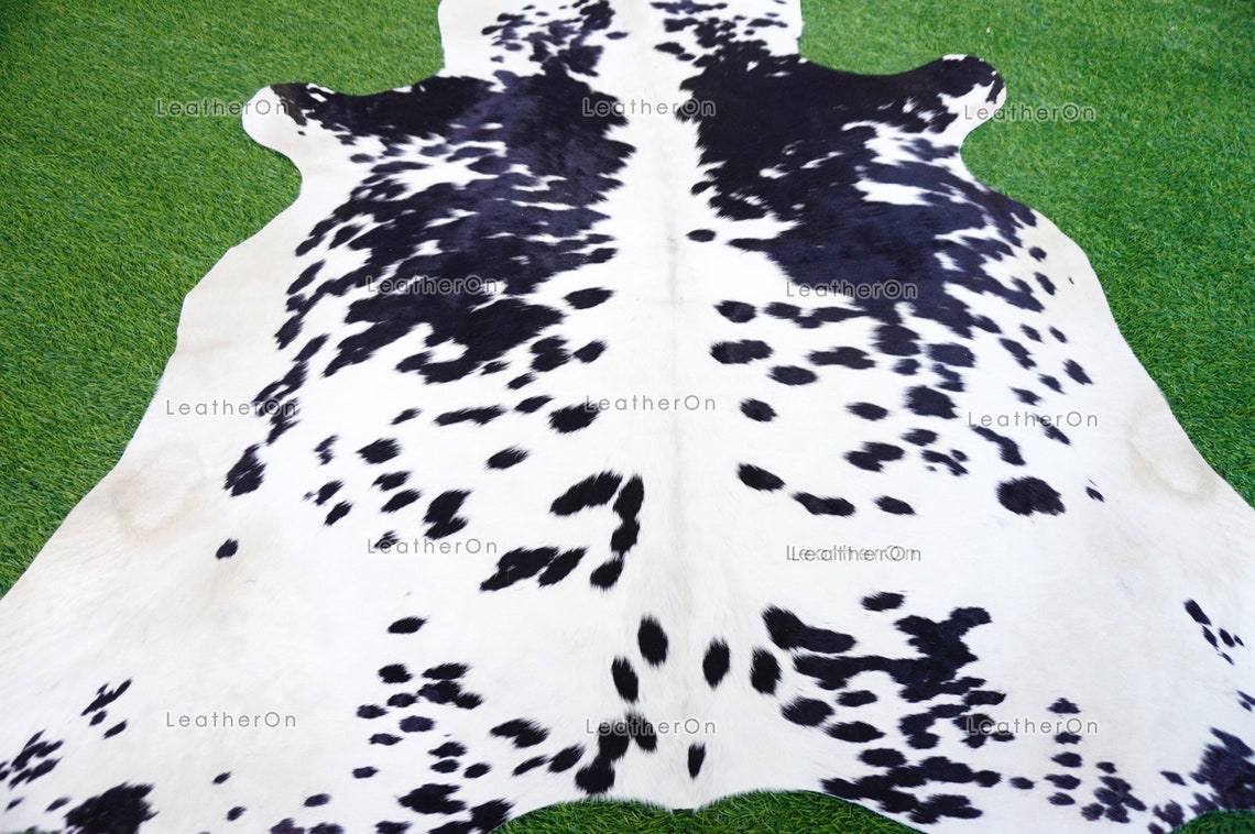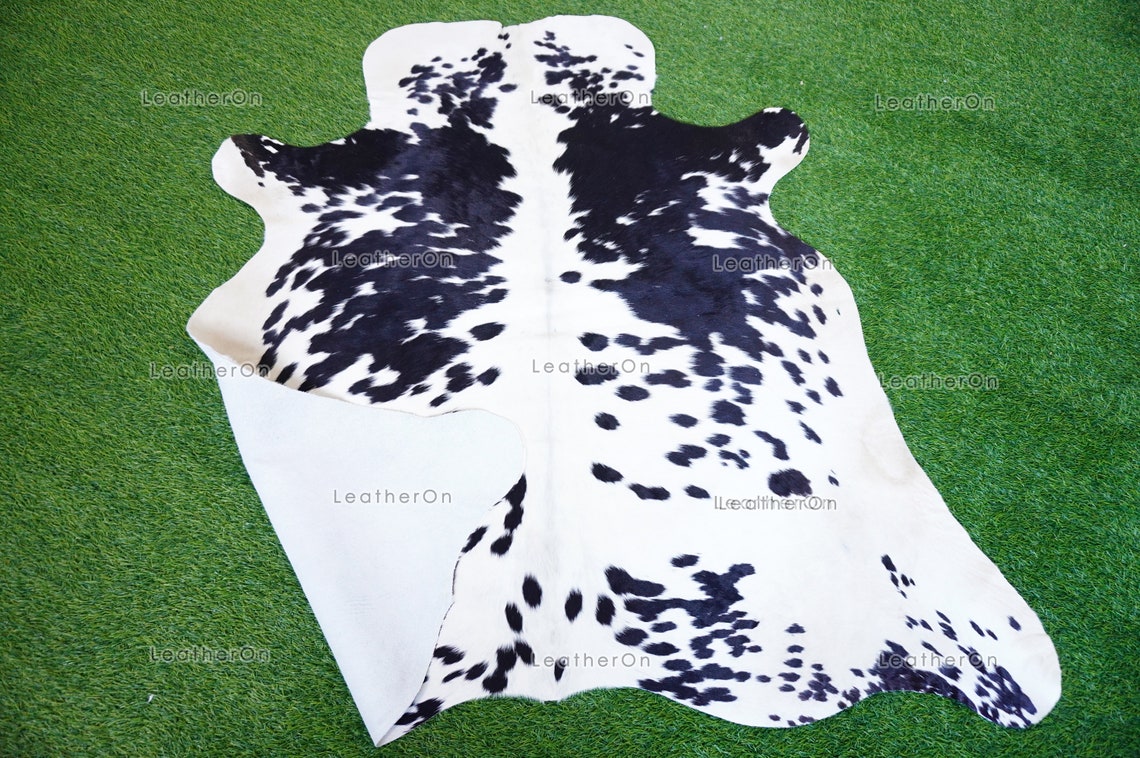 Small (4.3 X 4.6 ft.) EXACT As Photo, Black White COWHIDE Area RUG | 100% Natural Cowhide Rug | Hair-on Leather Cow Hide Rug | C601