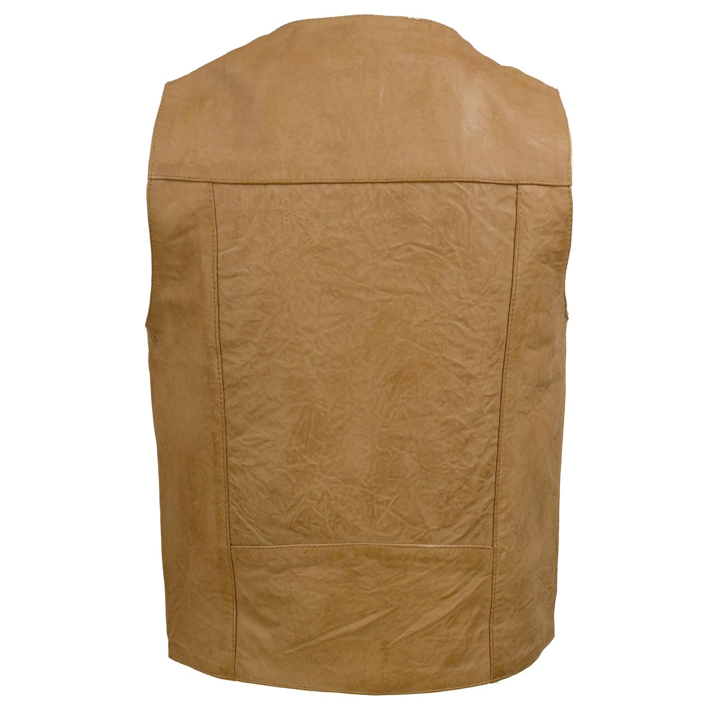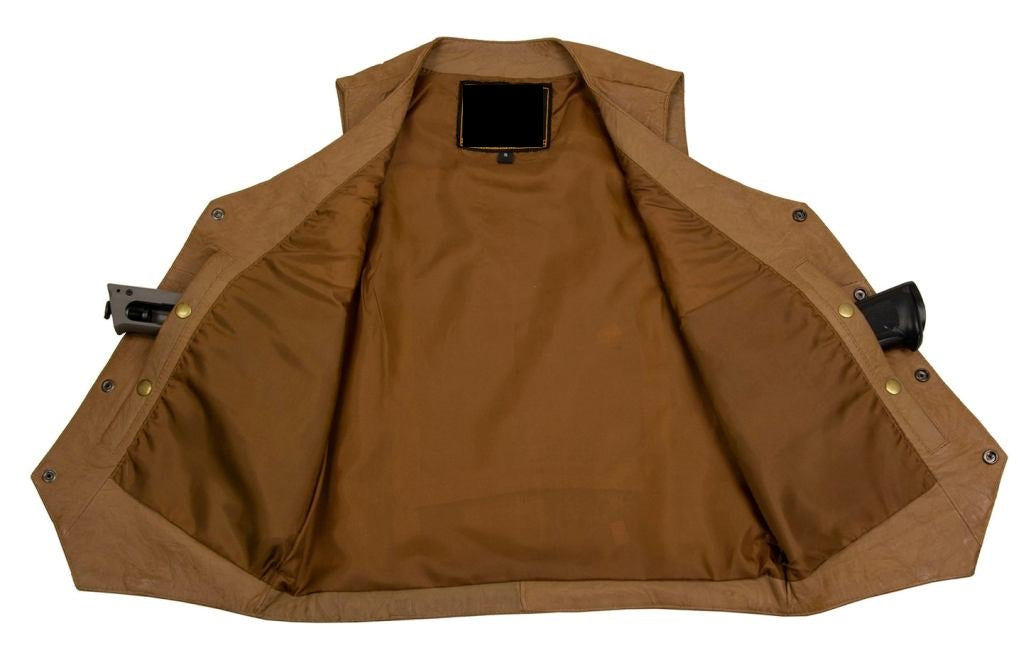 Embody the spirit of adventure with our handcrafted leather vest. Cut from rich, full-grain leather, this vest boasts a timeless design that's equal parts rugged and refined. The heavy-duty hardware ensure a secure fit, while the multiple pockets provide ample storage for your essentials. Whether you're a seasoned biker or just a fan of the leather lifestyle, this vest is the perfect companion for your next adventure.