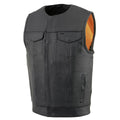 Collarless Snap/Zipper Club Style Motorcycle Leather Vest - Men's Real Leather Vest - Stylish Casual Outfit