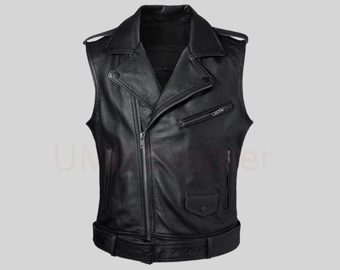 Real Cowhide Leather Vest | Handmade Leather Vest for Men | Genuine Cow Skin Biker Vest