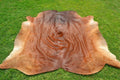 X Large ( 6 x 6 ft ), UNIQUE Brown Cowhide Hair-on Leather Area Rug C321 - EXACT As PICTURE