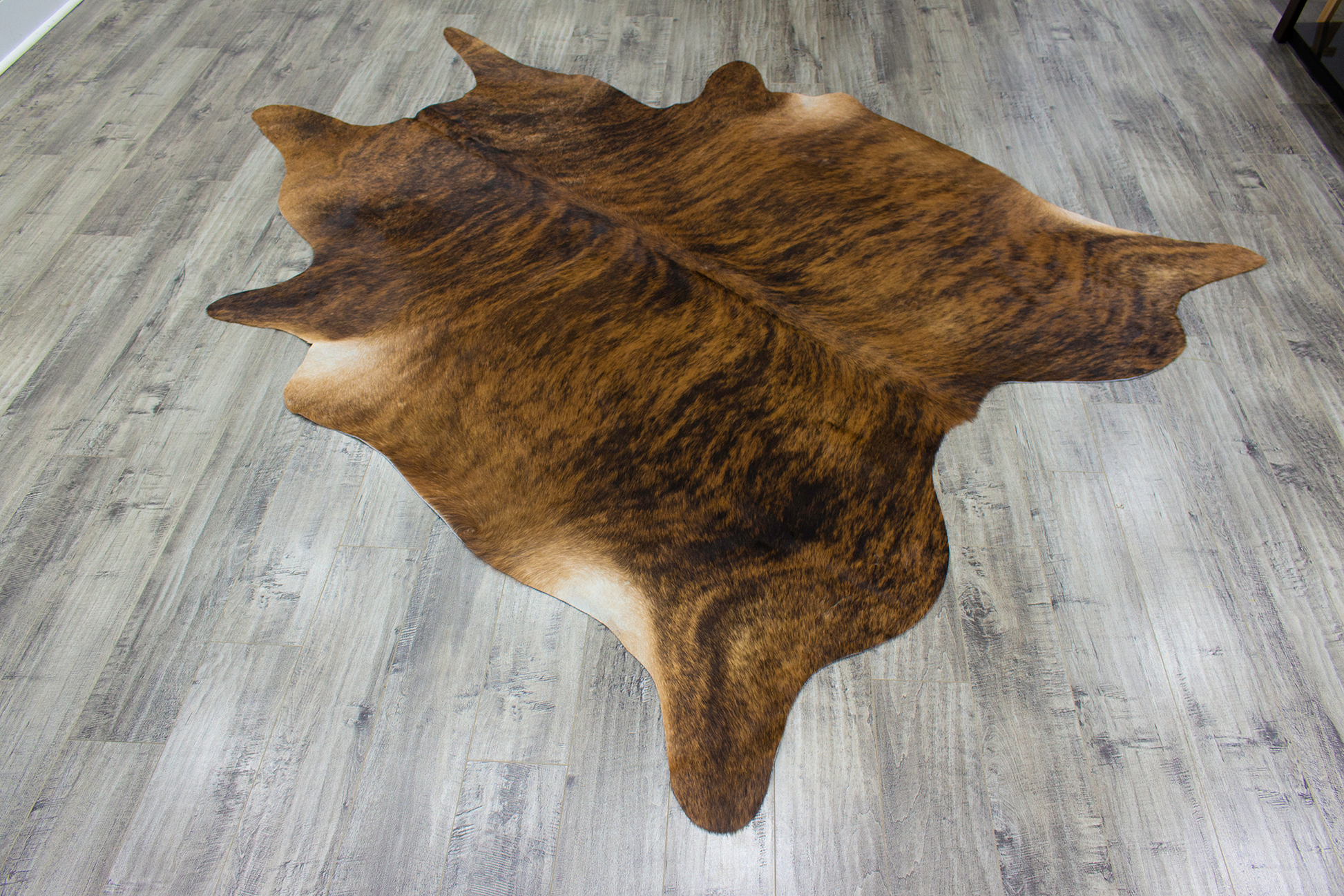 XLarge ( 7.3 x 6 ft ) BRAZILLIAN BRINDLE Cowhide Rug Hair-on Leather Area Rug - Exact as Photo