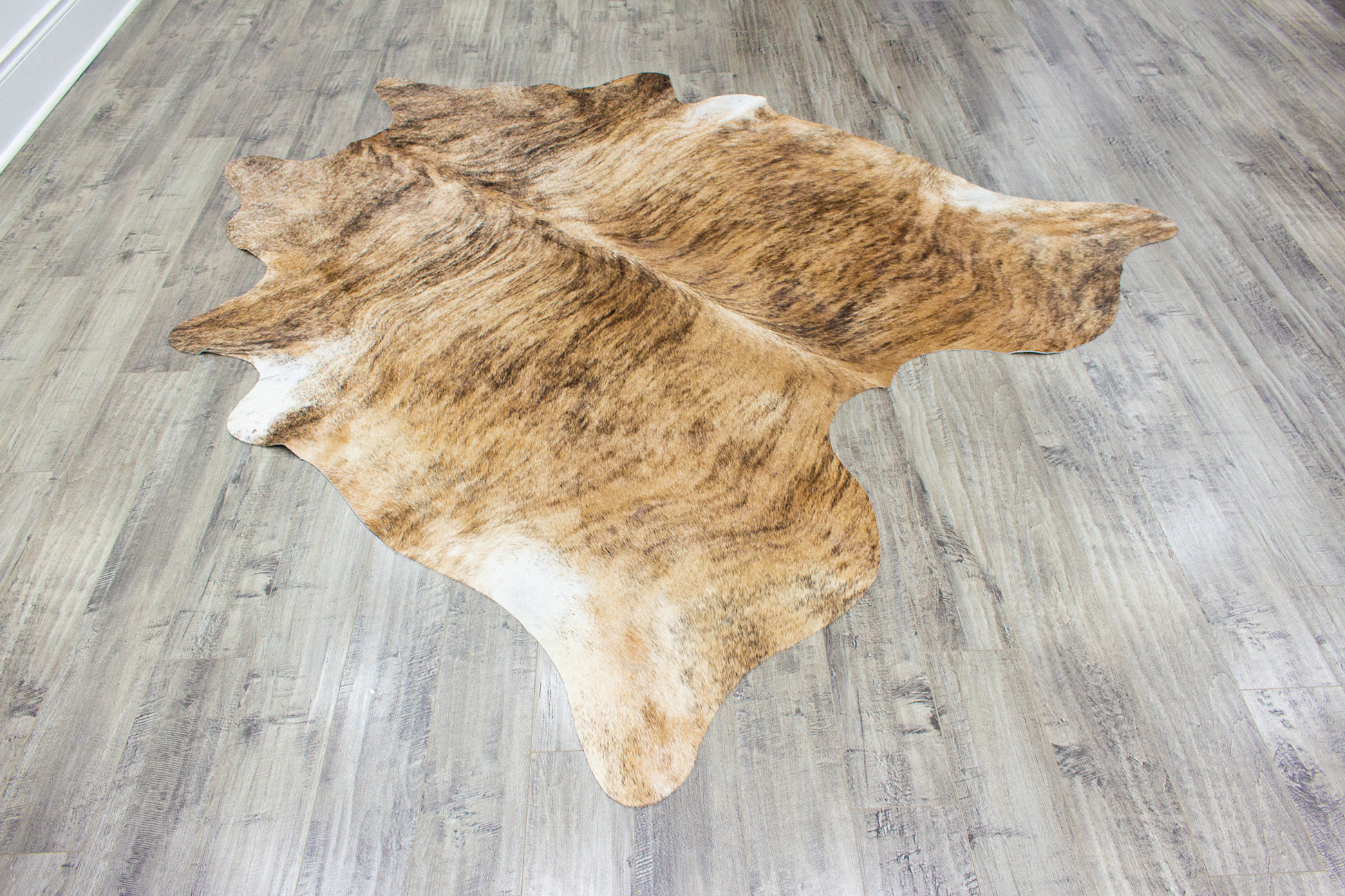 XLarge ( 7 x 6 ft ) BRAZILLIAN BRINDLE Cowhide Rug Hair-on Leather Area Rug - Exact as Photo
