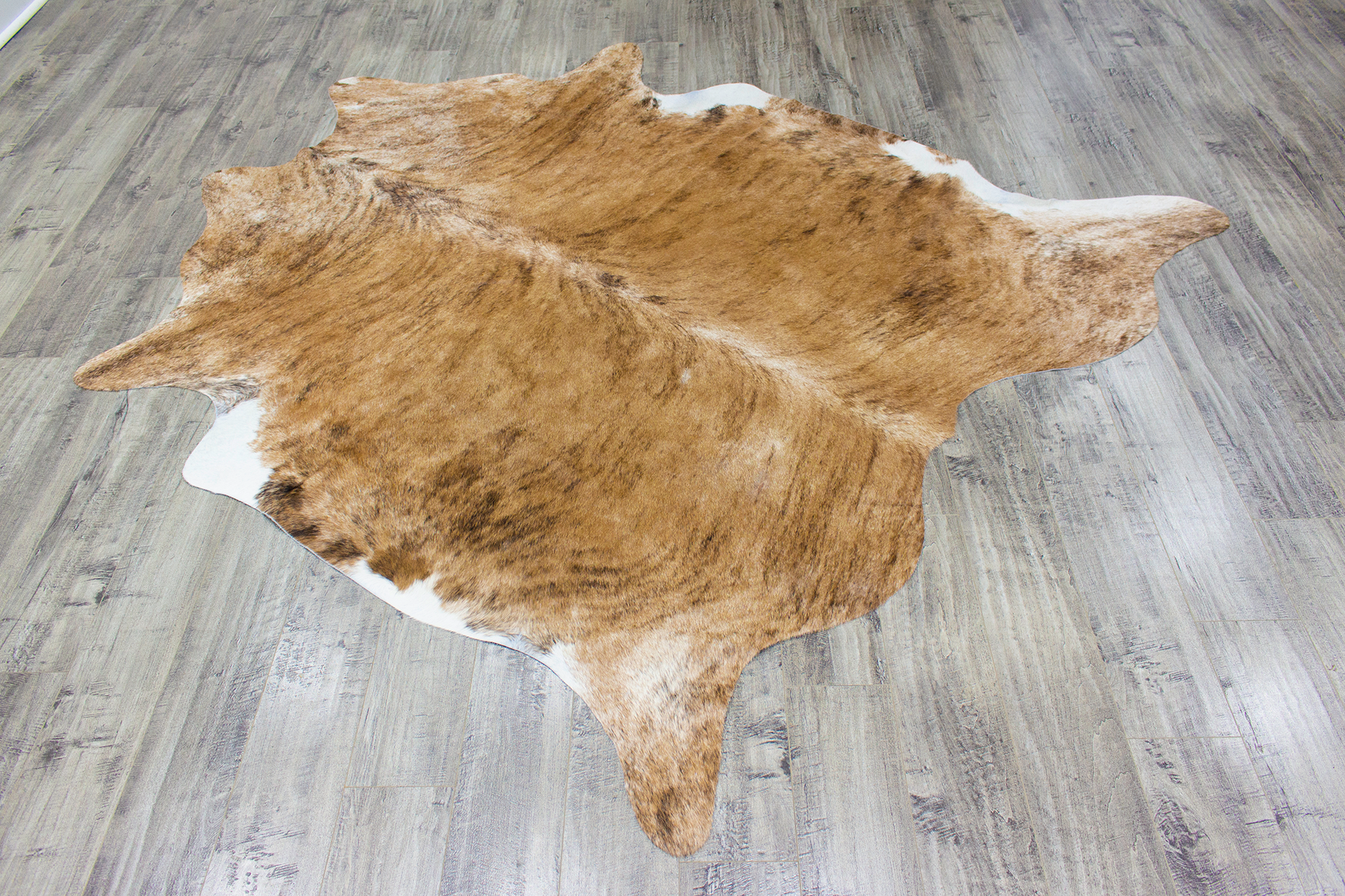 XLarge ( 6.7 ft x 5.8 ft ), Brazilian Brindle COWHIDE Rug Hair-on Leather Area Rug - Exact as Photo