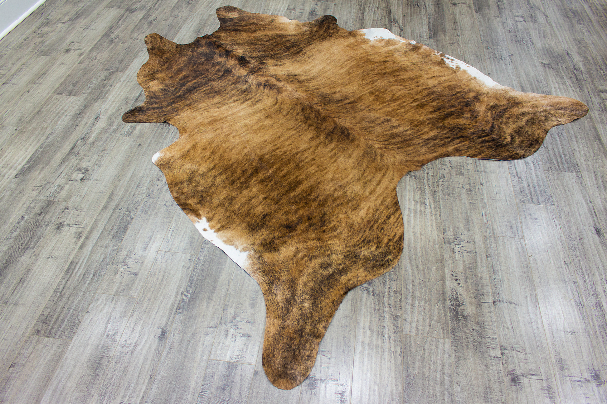 XLarge ( 6.9 x 6.6 ft ) Brazilian Brindle COWHIDE Rug Hair-on Leather Area Rug - Exact as Photo