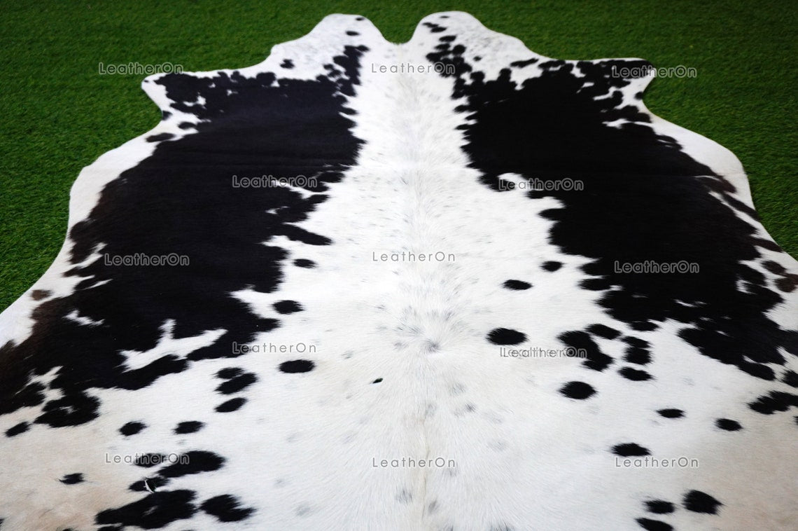 Small (4.8 x 4.5 ft.) EXACT As Photo, Black White COWHIDE RUG | 100% Natural Cowhide Area Rug | Hair-on Cowhide Leather Rug | C638