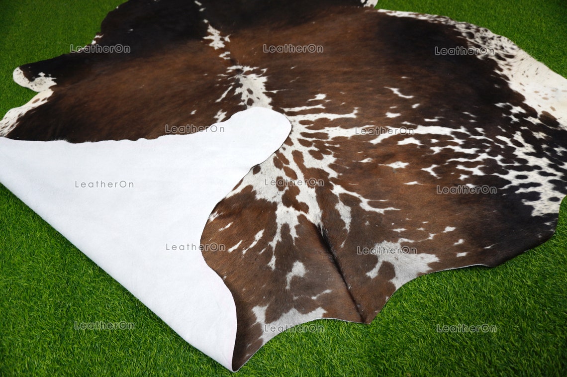 Tricolor XLARGE (5.9 X 6 ft.) Exact As Photo Cowhide Rug | 100% Natural Cowhide Area Rug | Real Hair-on Leather Cowhide Rug | C706