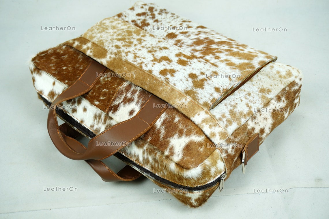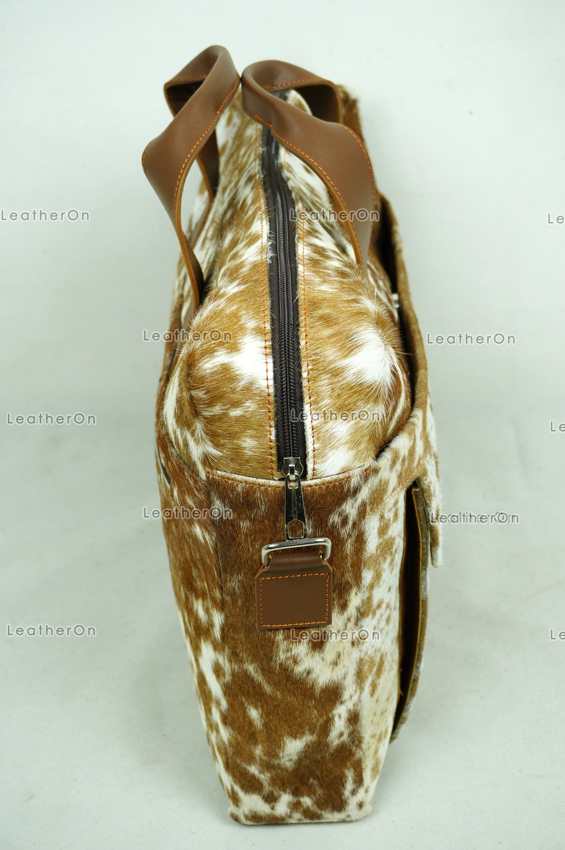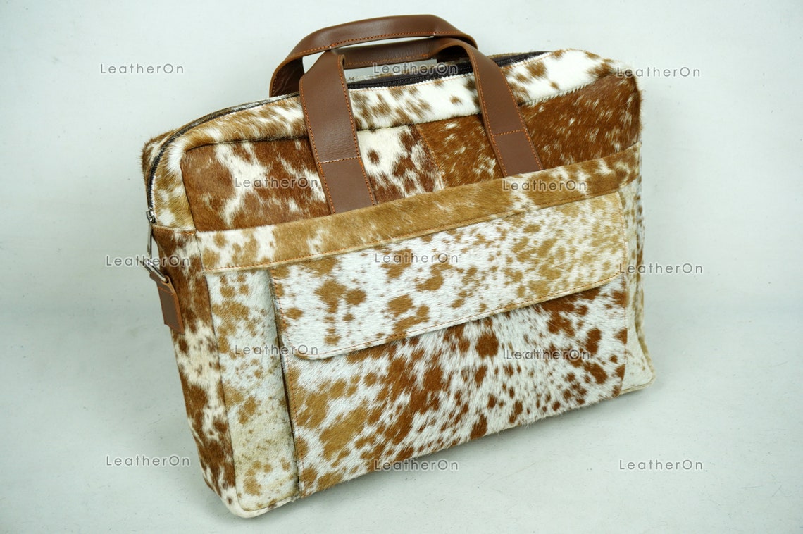Cowhide Laptop Briefcase Bag | Natural Cowhide Office Satchel Bag | Cowhide Messenger Bag | Cowhide File Bag | Documents Bag | OB28