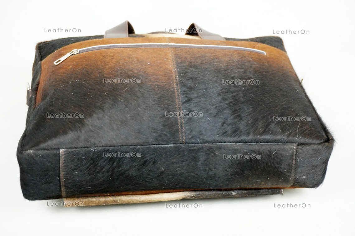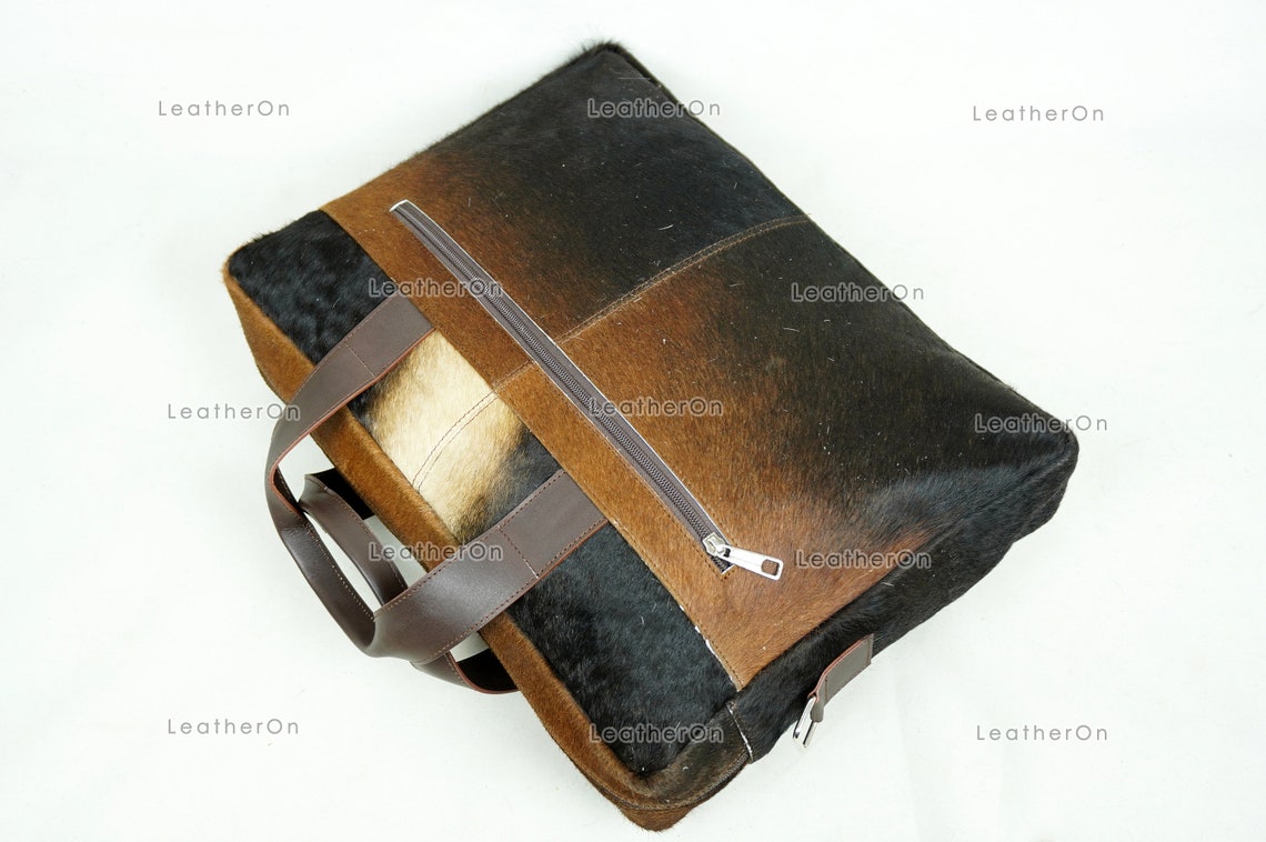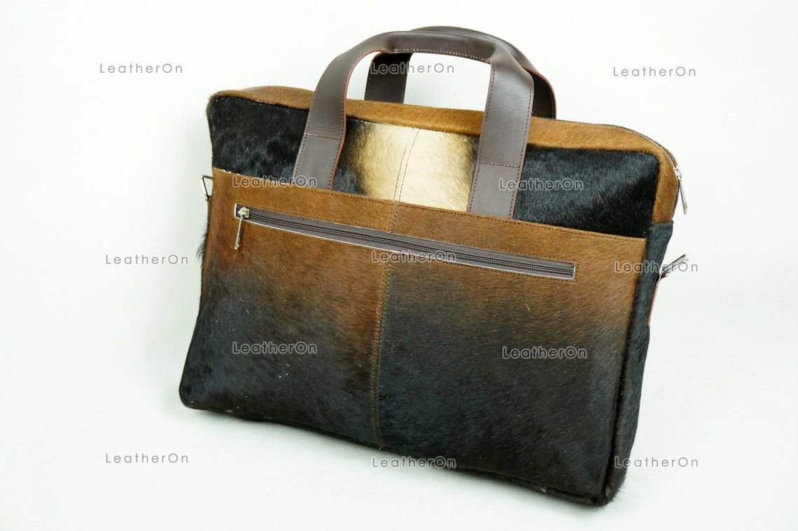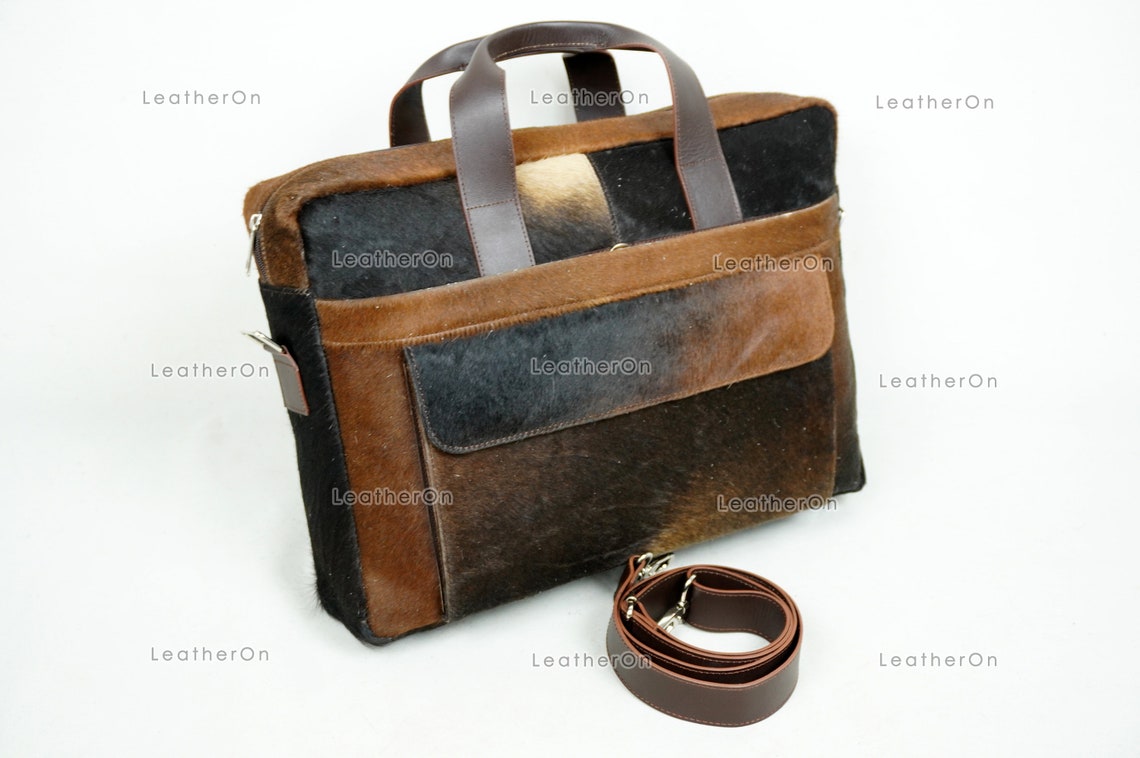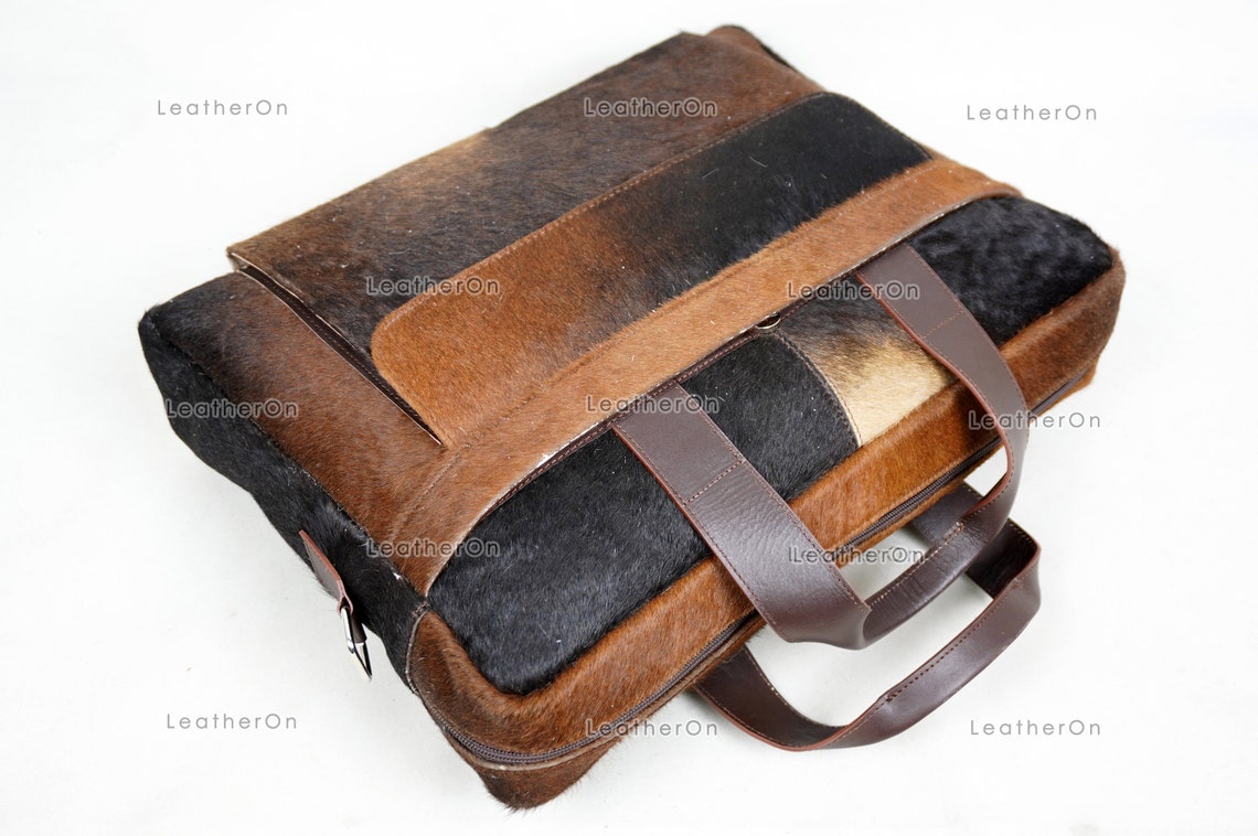 Cowhide Laptop Briefcase Bag | Natural Cowhide Office Satchel Bag | Cowhide Messenger Bag | Cowhide File Bag | Documents Bag | OB27