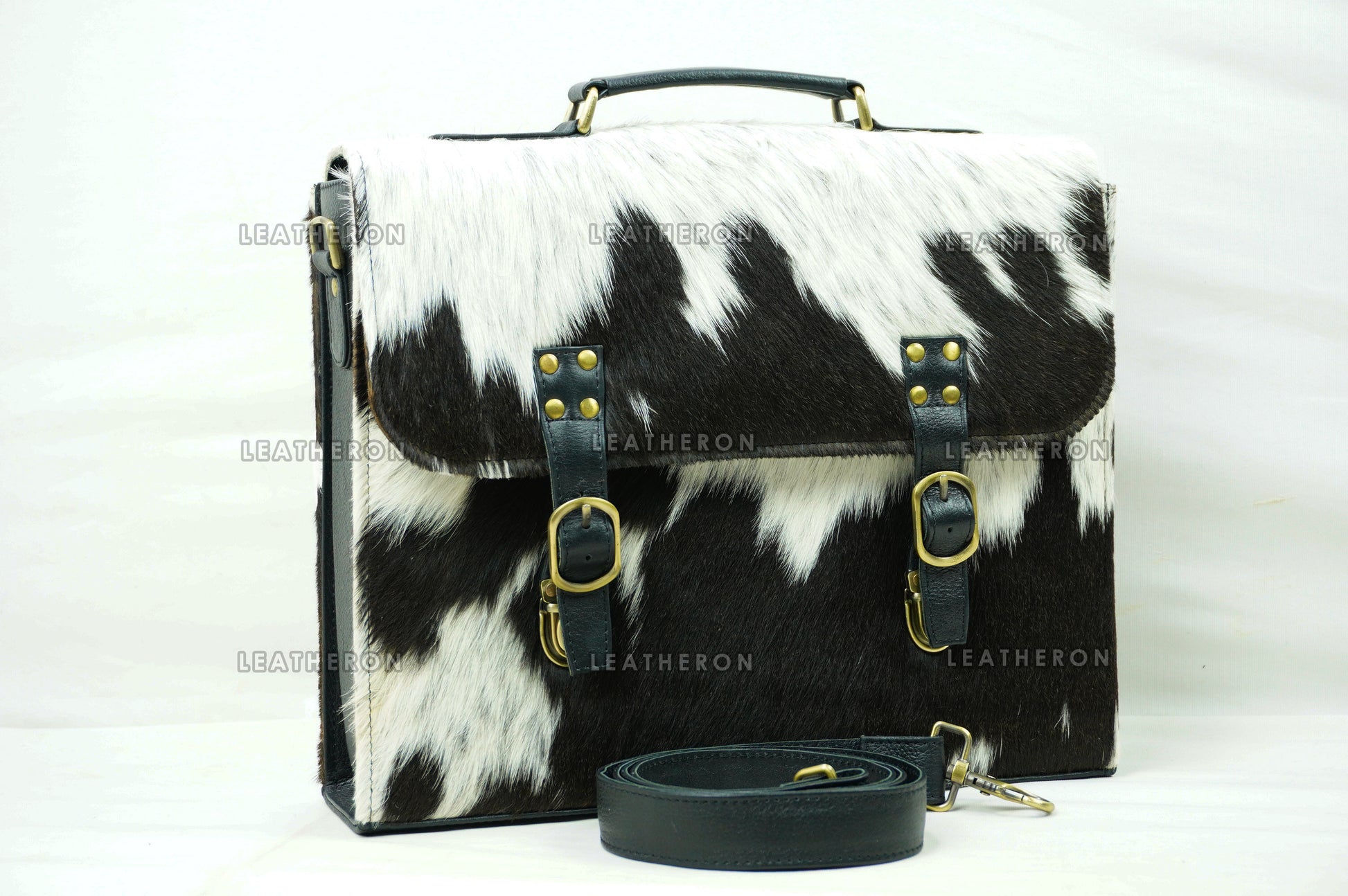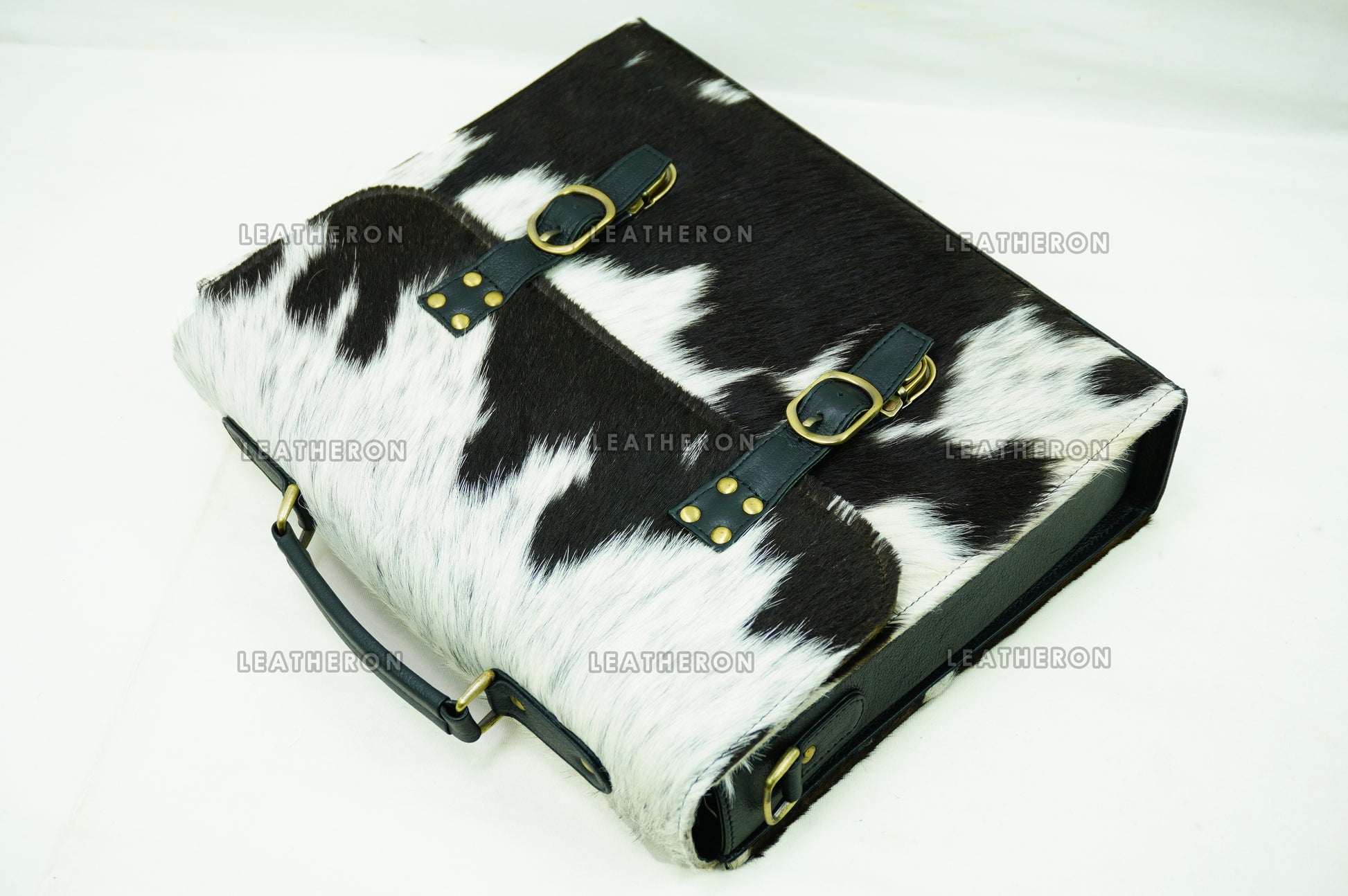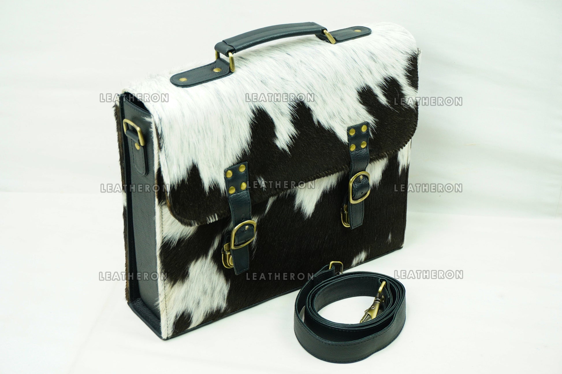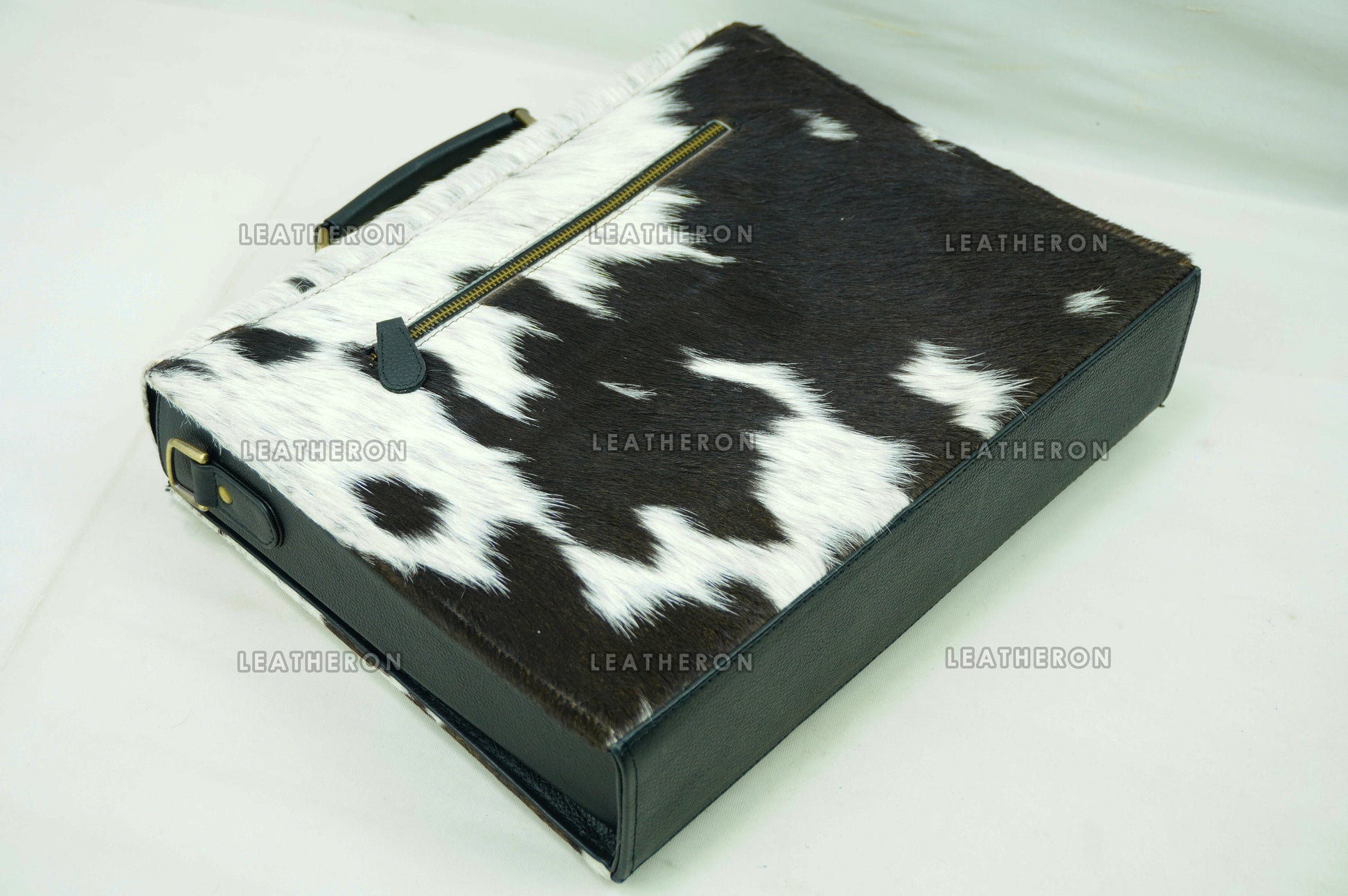 Cowhide Leather Office Bag Natural Cowhide Laptop Bag Hair On Leather Briefcase Real Cowhide Documents Bag Cowhide File Bag | OB4