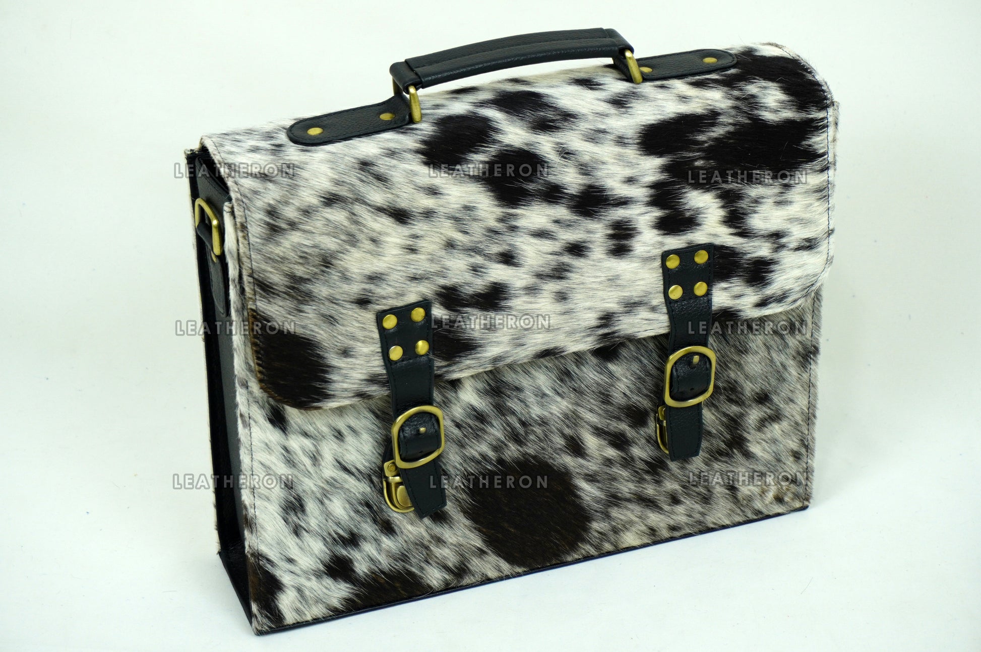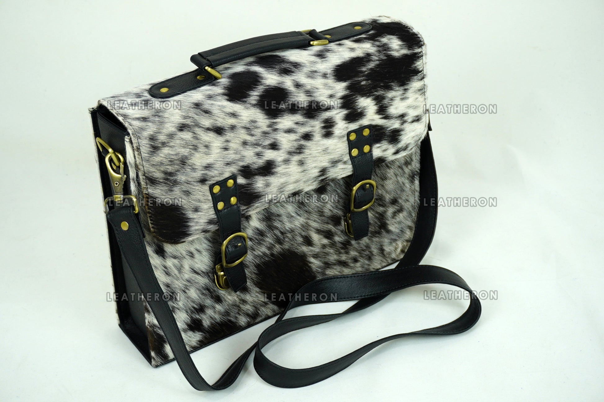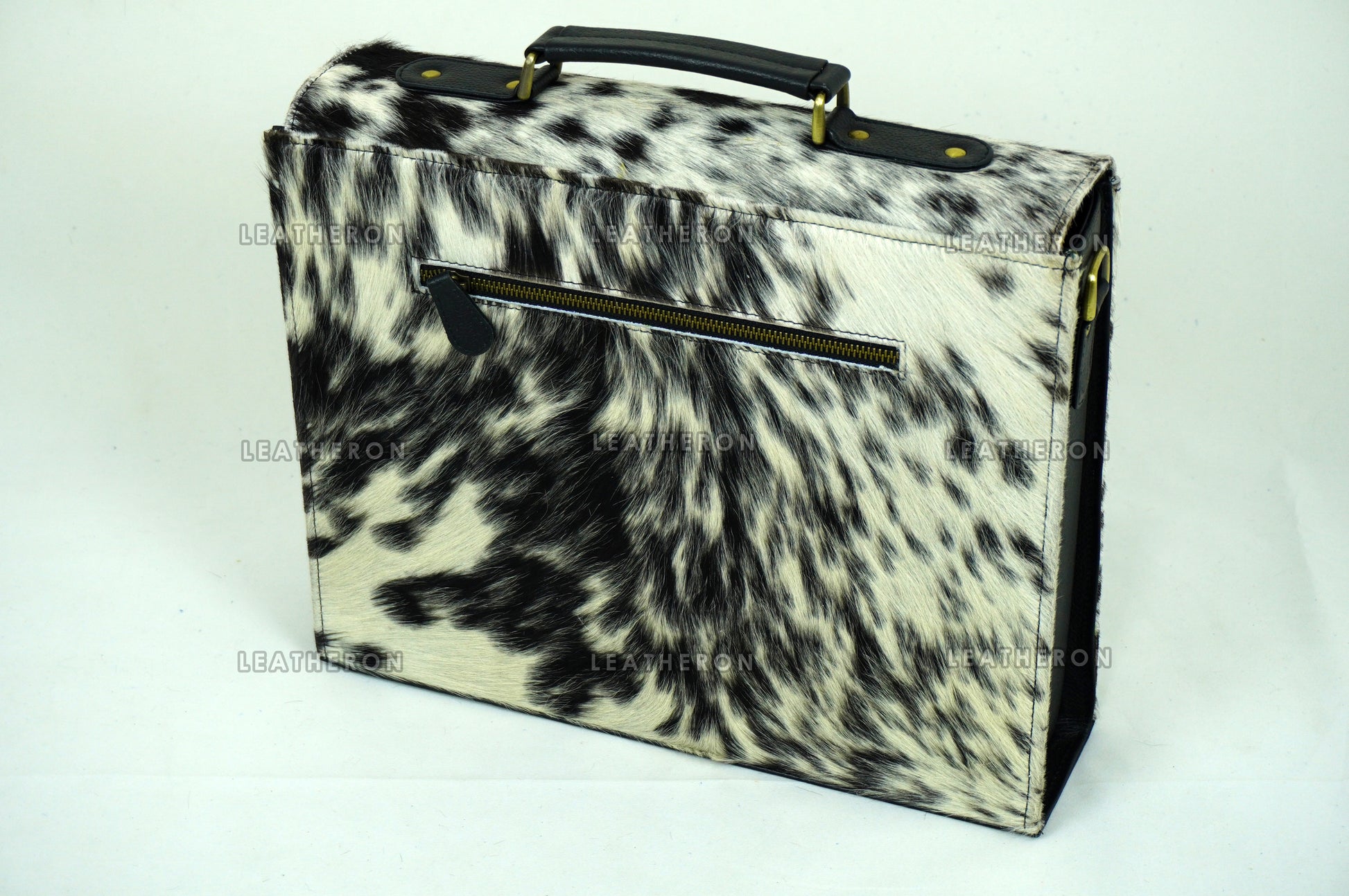 Cowhide Leather Office Bag Real Hair on Cowhide Leather File Bag Natural Cow Skin Laptop Bag | OB2
