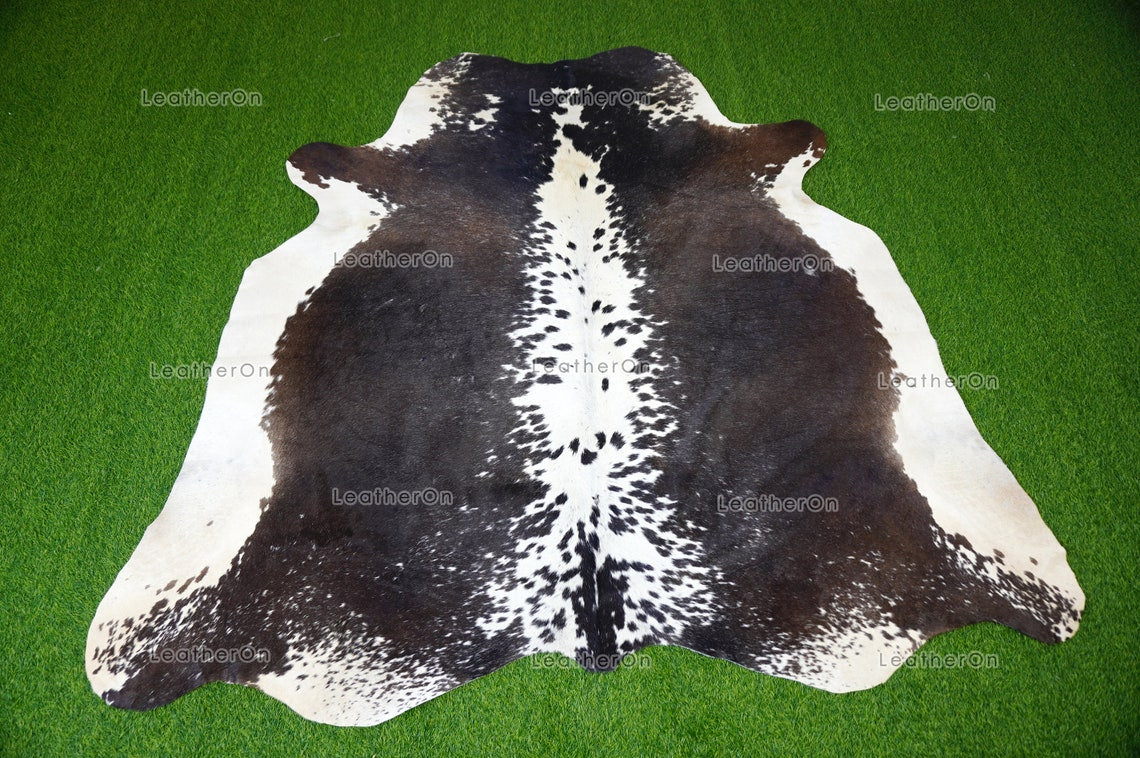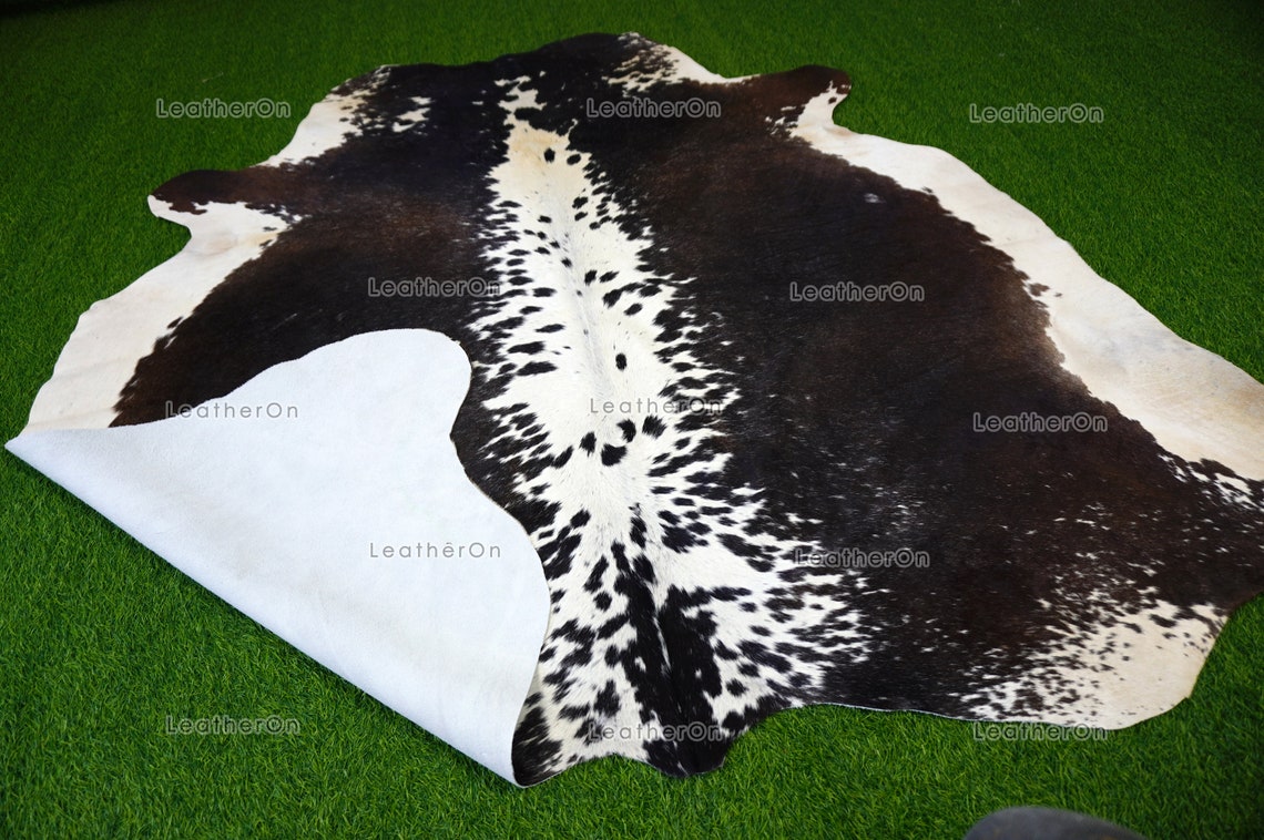 Tricolor XLARGE (6 X 5.8 ft.) Exact As Photo Cowhide Rug | 100% Natural Cowhide Area Rug | Real Hair-on Leather Cowhide Rug | C684