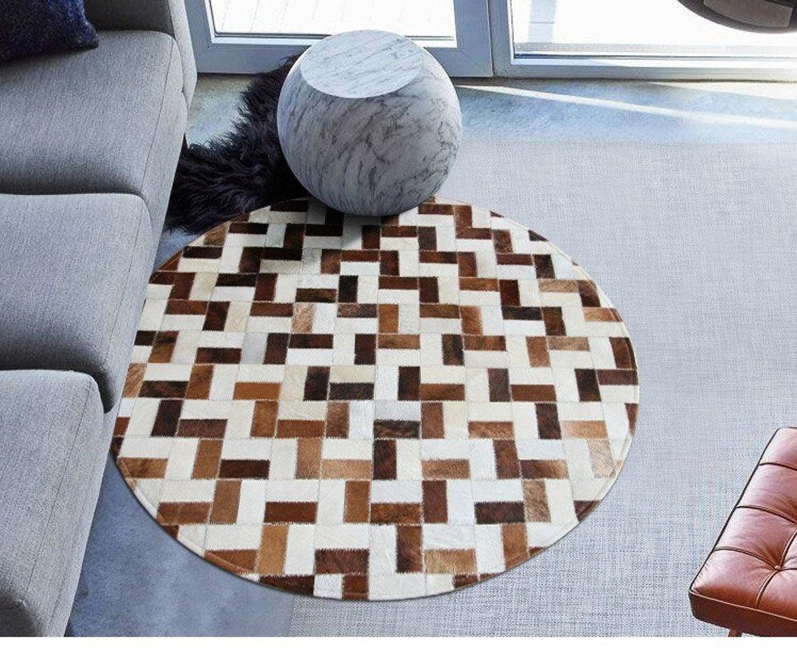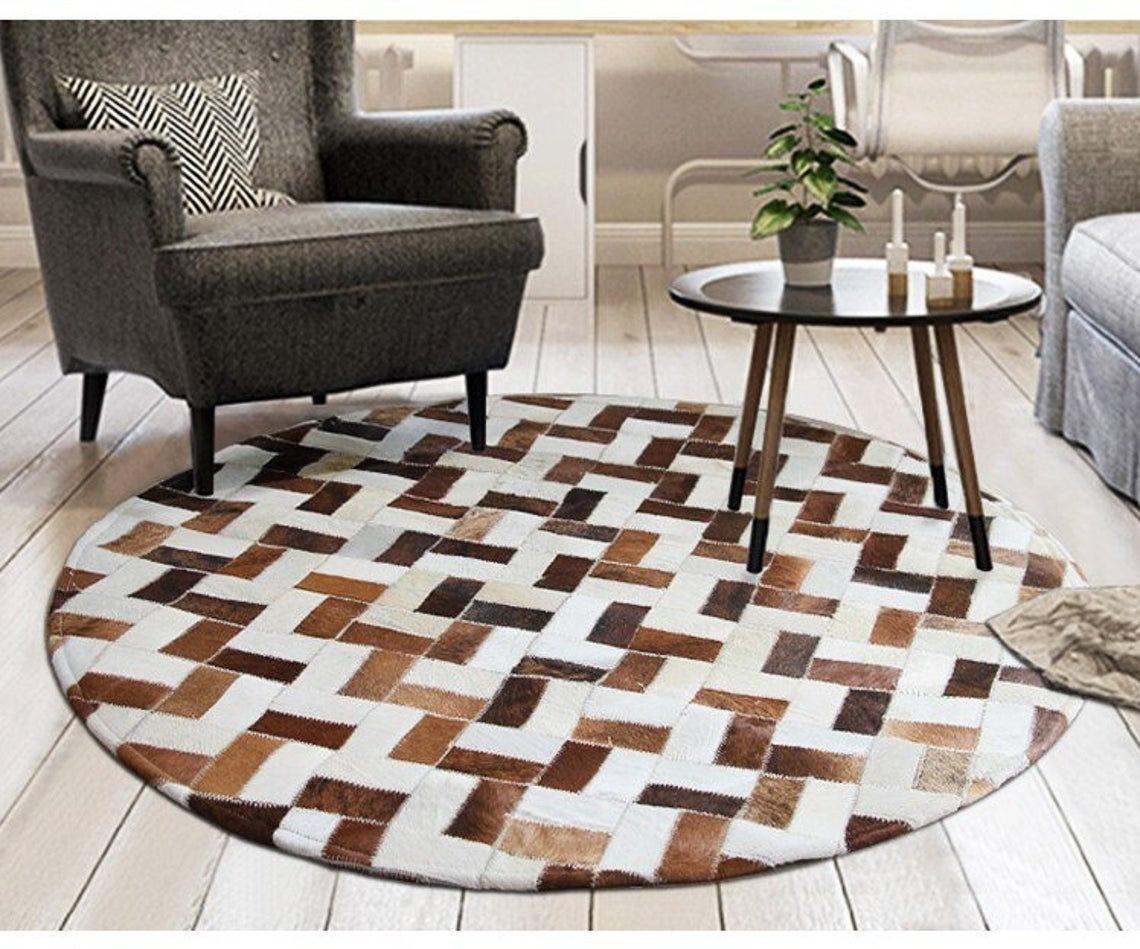 HANDMADE 100% Natural Patchwork Cowhide Area Rug | Hair on Leather Cowhide Carpet | PR104