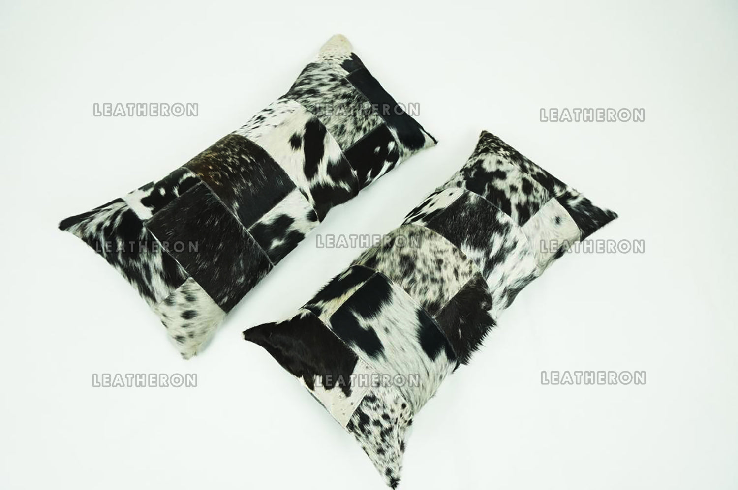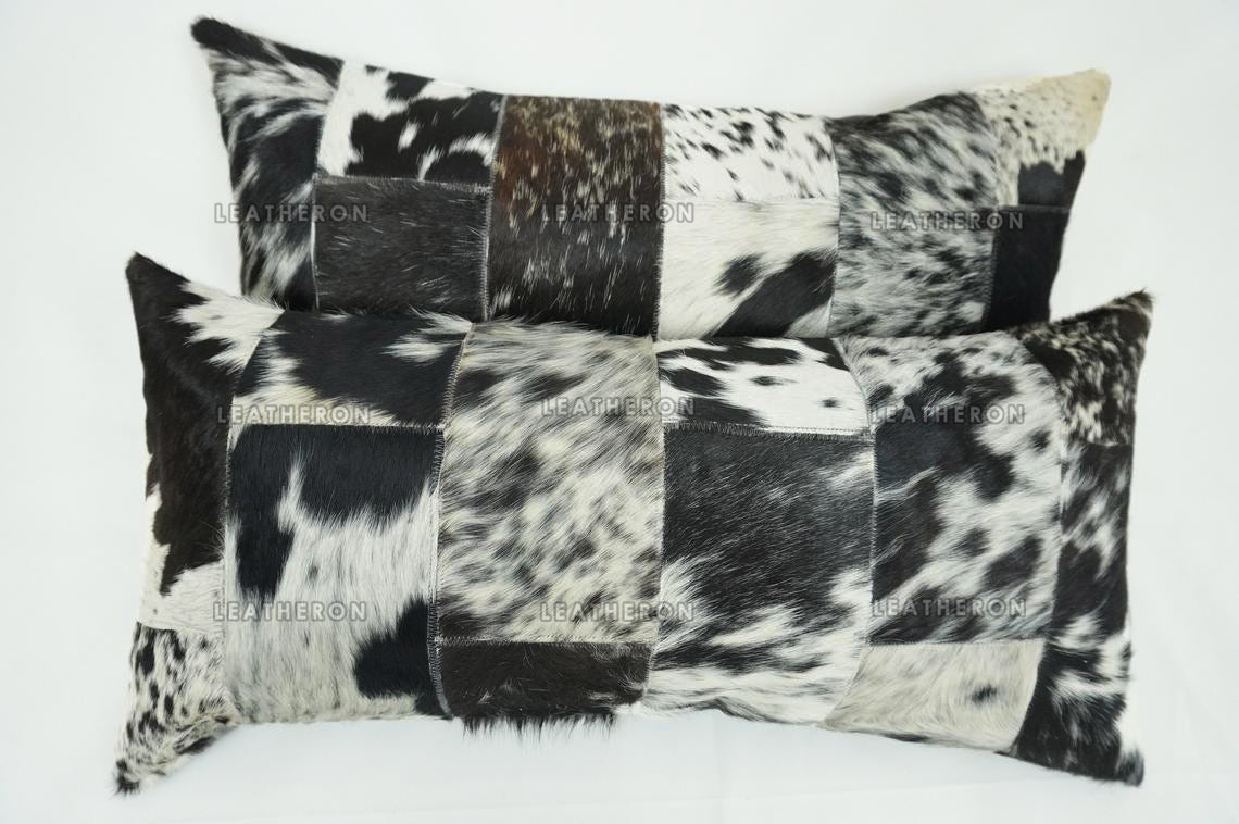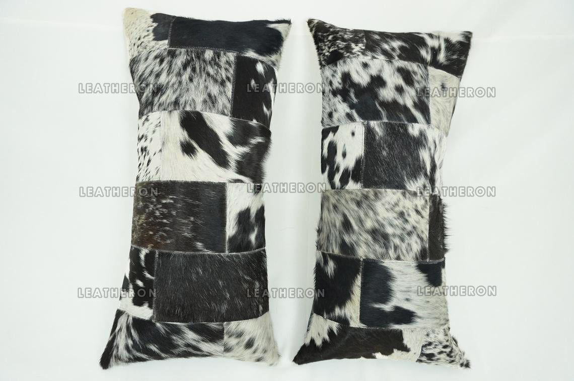 Cowhide Patchwork Pillow Covers (12 x 24 inch) 100% Natural Hair on Leather Pillow Cases Real Cow Skin Cushion Covers | PLW185