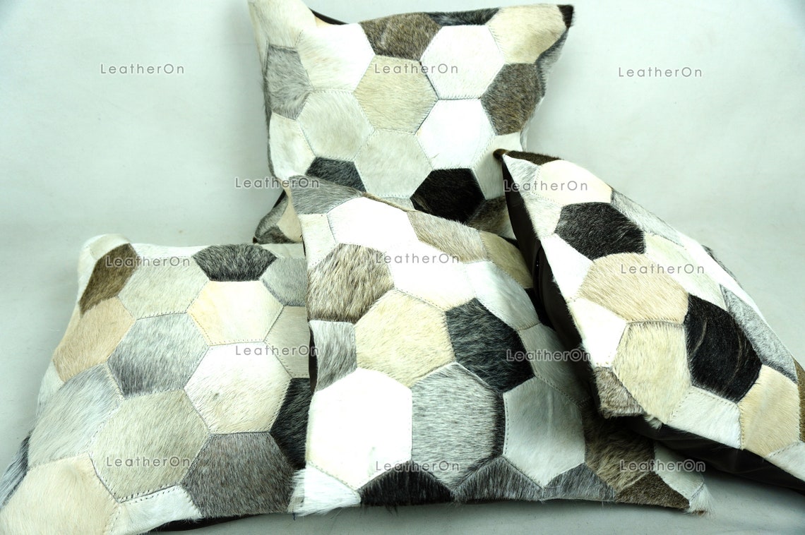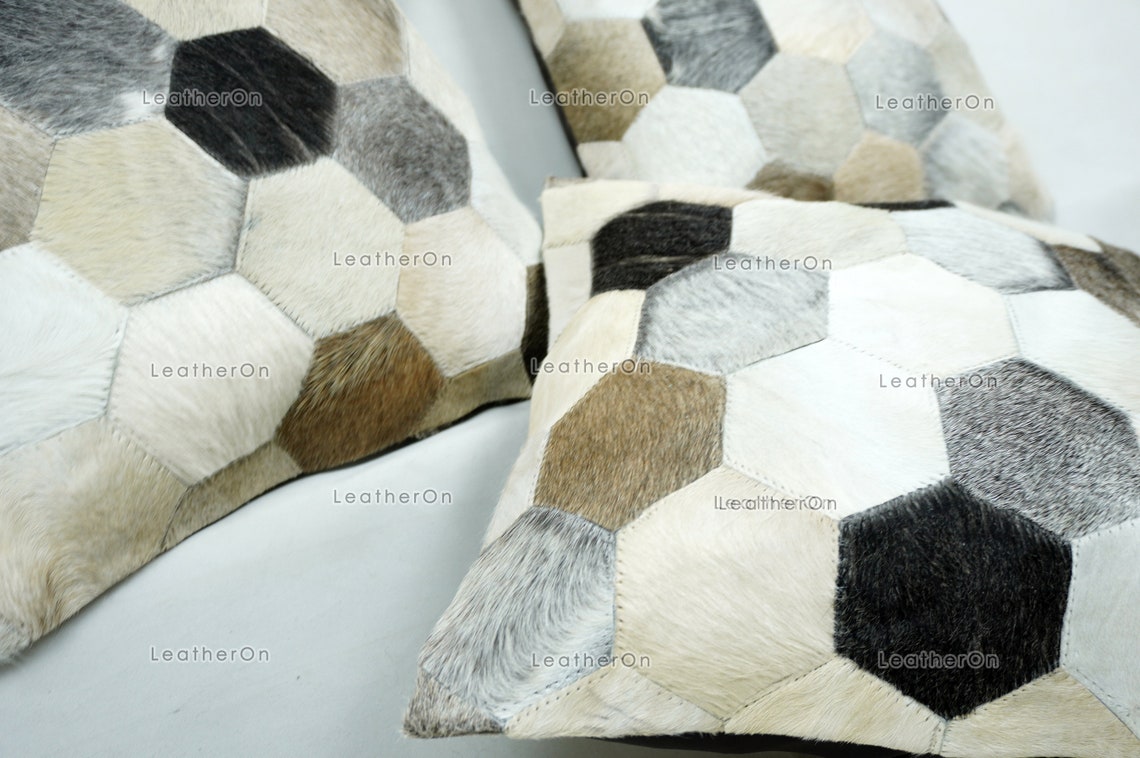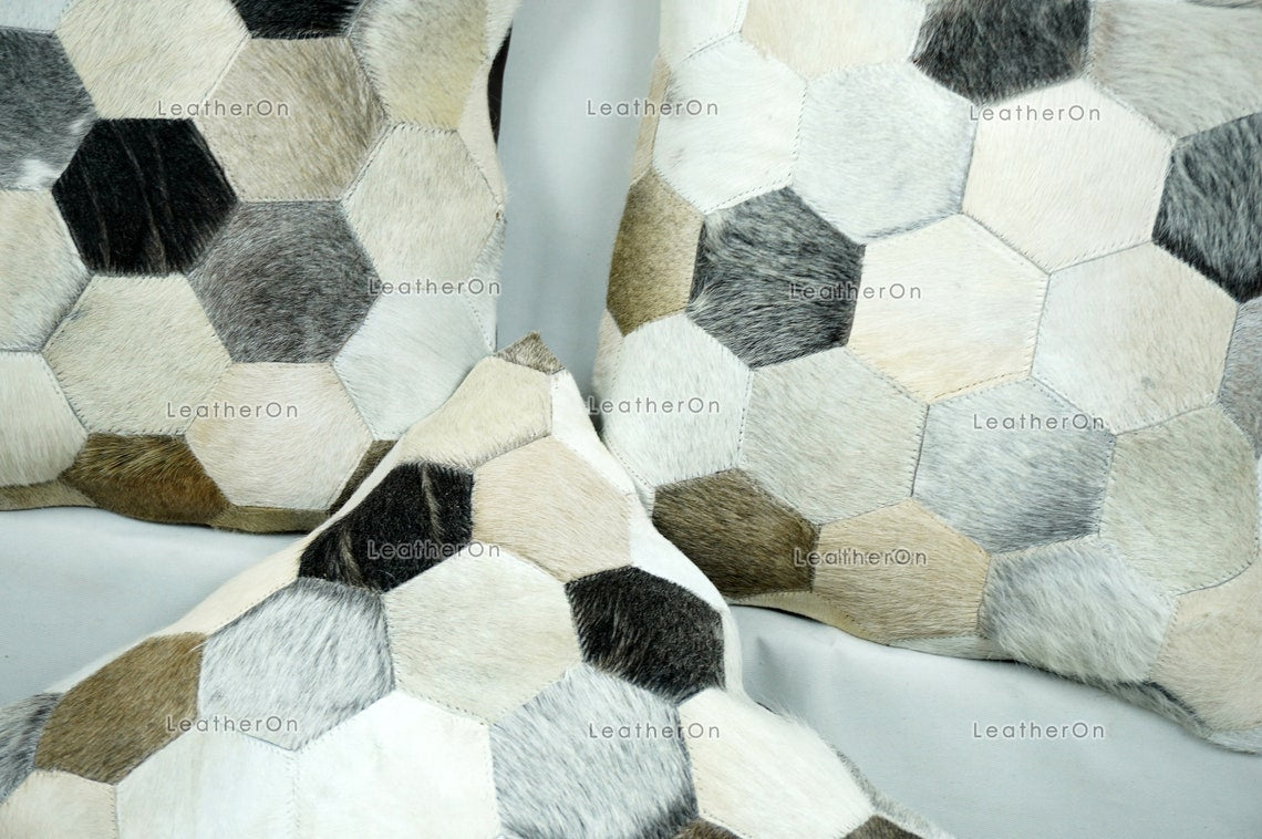 Cowhide Patchwork Pillows Covers 100% Natural Hair on Cowhide Leather Pillow Cases Real Cow Skin Cushion Covers | PLW222