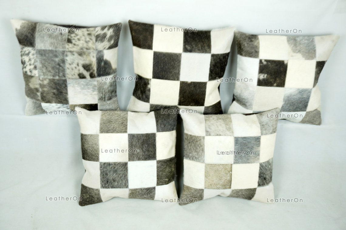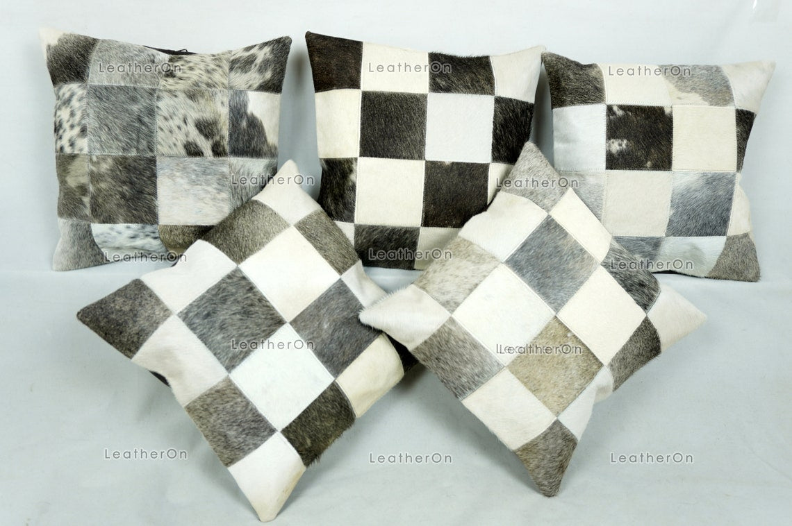 Cowhide Patchwork Pillows Covers 100% Natural Hair on Cowhide Leather Pillow Cases Real Cowhide Cushion Covers | PLW229
