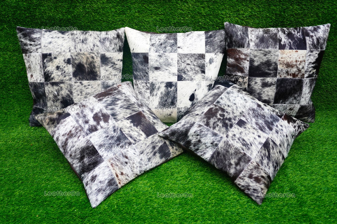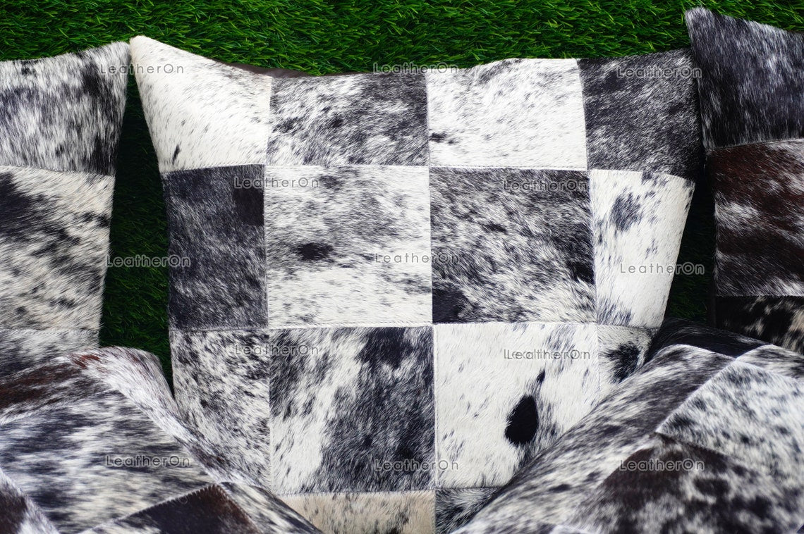 Cowhide Patchwork Pillows Covers 100% Natural Hair on Cowhide Leather Pillow Cases Real Patchwork Cowhide Cushion Cases | PLW216